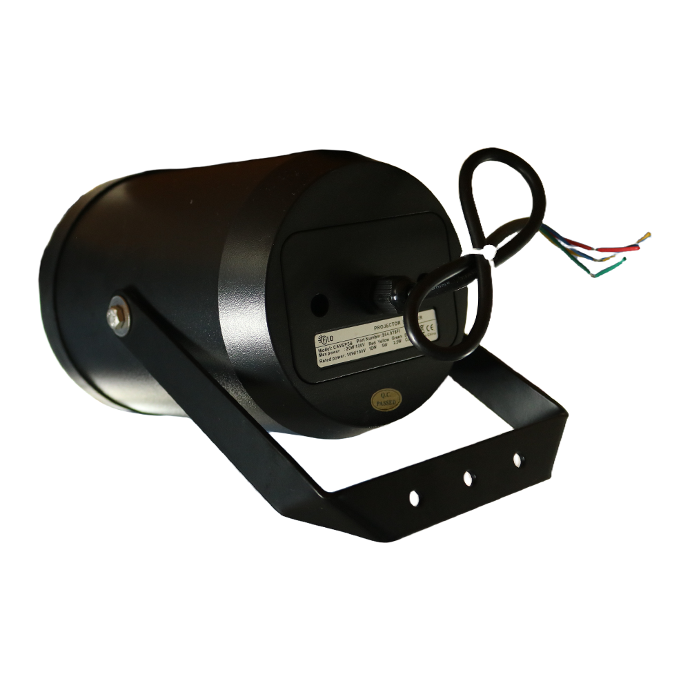 The CAVSP5B 5″ Projection Speaker with IP55-rated ABS casing and bracket. Ideal for outdoor use, featuring a wide 110Hz-15kHz frequency response and versatile power taps (2.5W/5W/10W). Durable construction with ABS and powder-coated aluminum mesh ensures reliability in any environment.