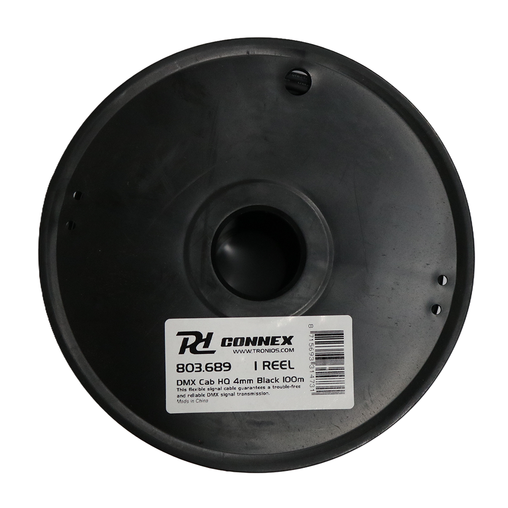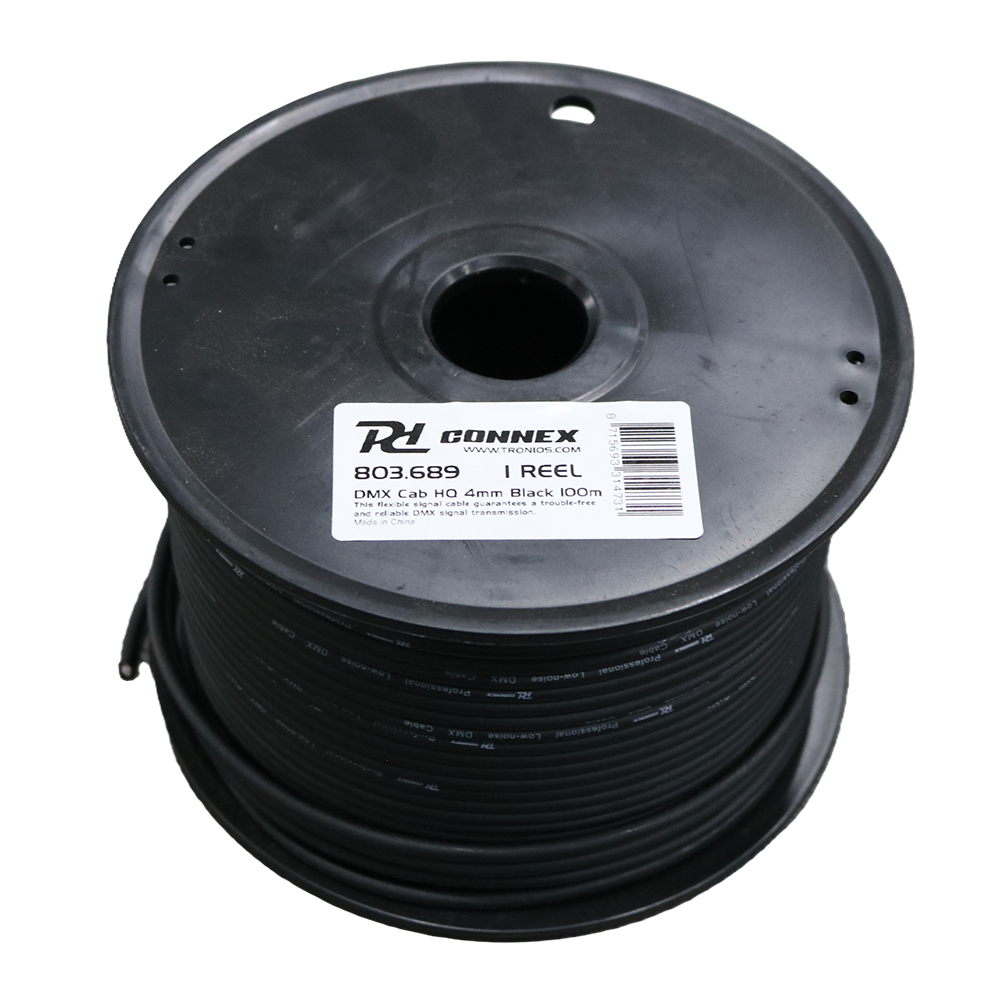 DMX signal cable designed for reliable, interference‑free data transmission. Flexible and durable, it is supplied on a 100 m reel for convenient installation