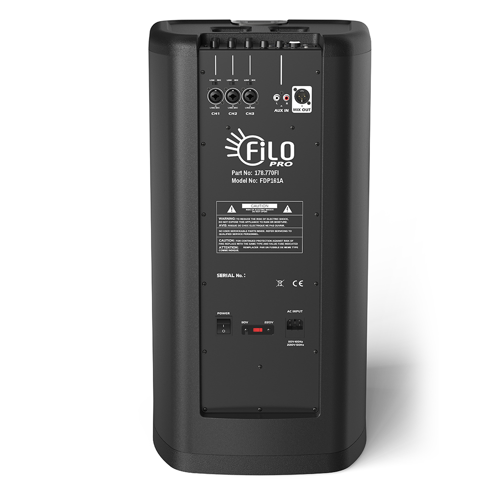 Engineered for power and precision, the Filo Pro FDP161A Column Speaker Set—featuring the sleek FDP161A model stands an imposing 206cm tall, projecting crystal clear audio through 16 x 3” neodymium drivers and delivering deep, commanding lows via a 12″ x 18″ subwoofer, all housed in a durable moulded cabinet.