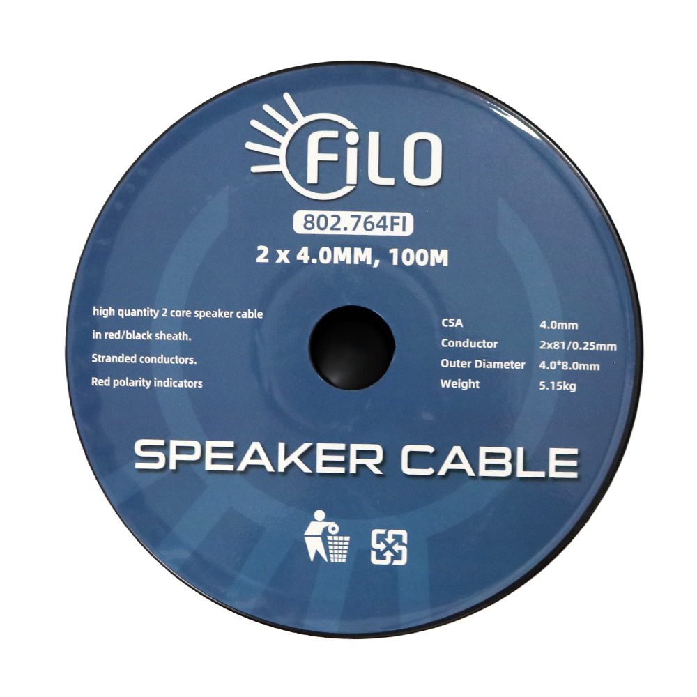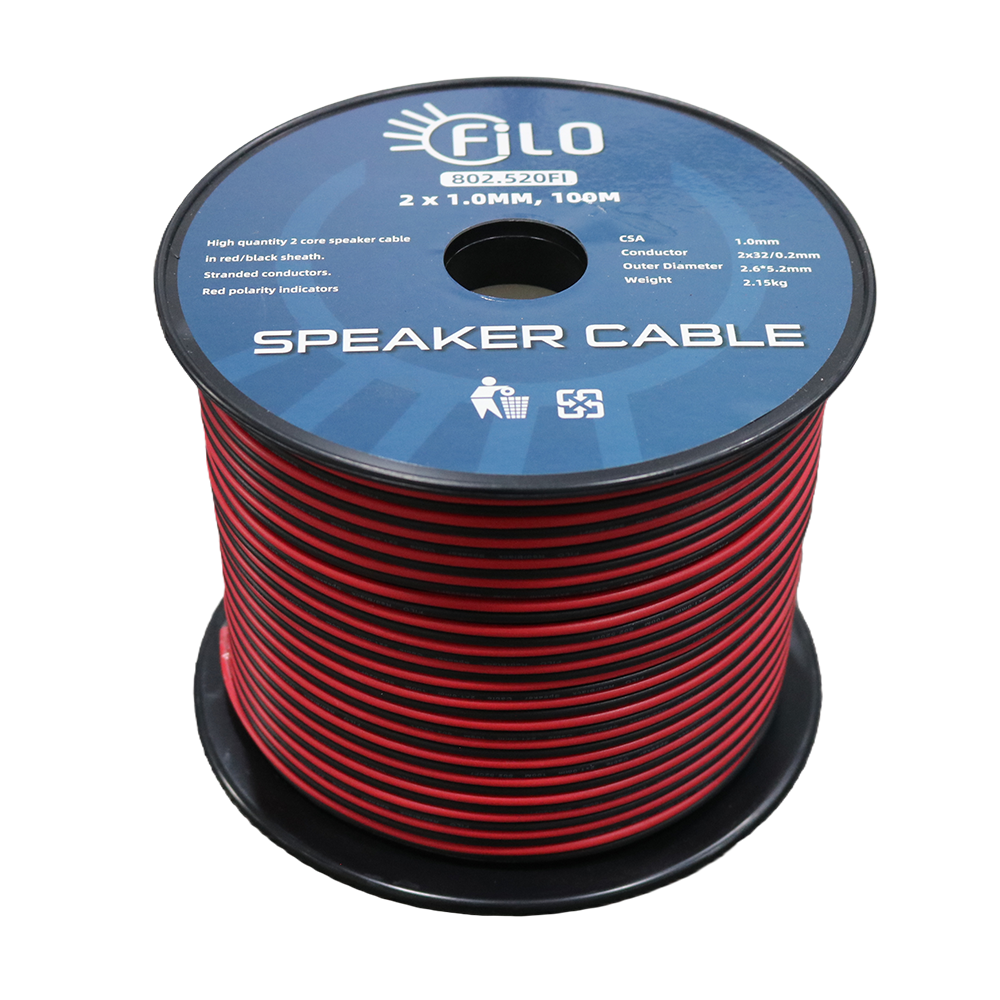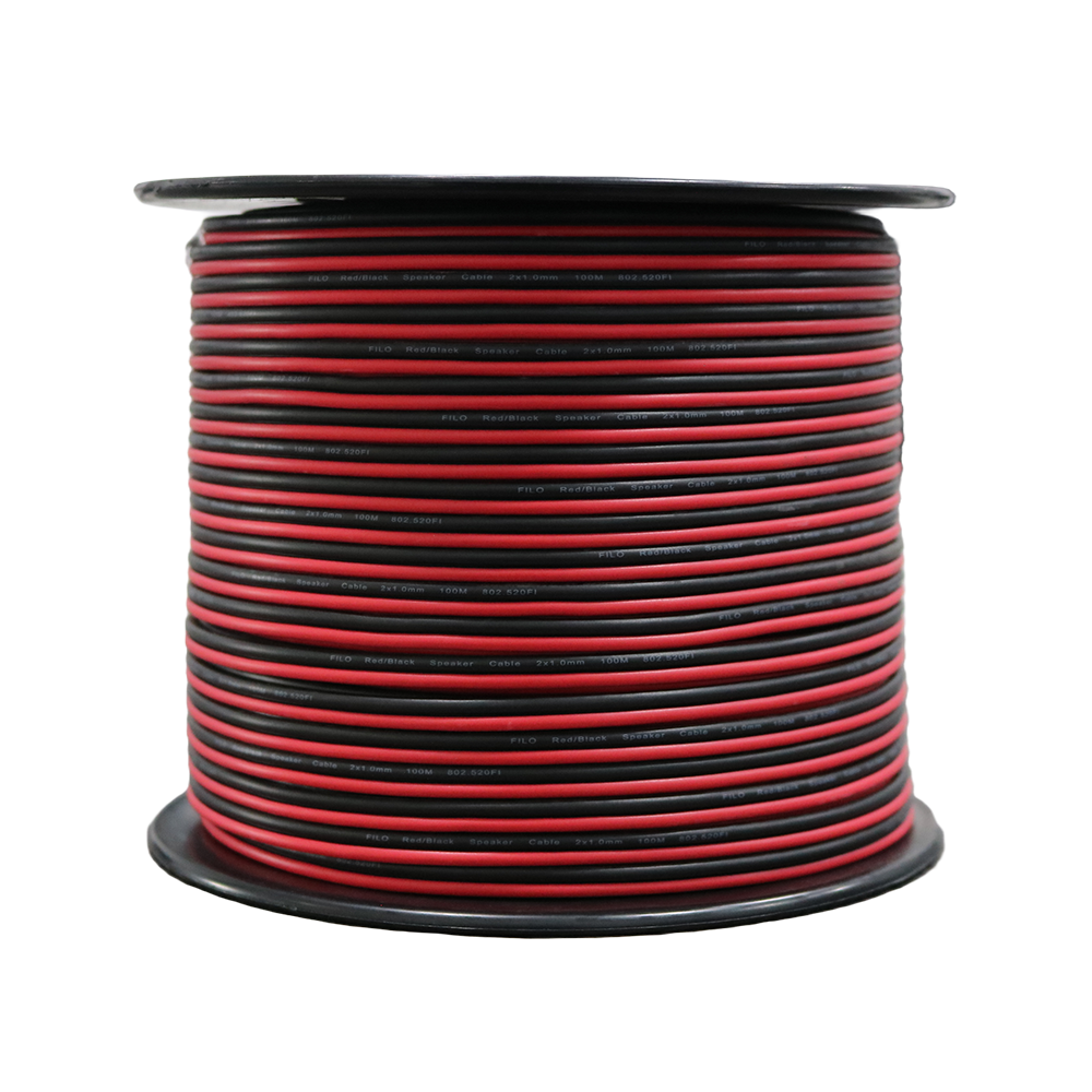 Flexible, heavy‑duty speaker cable designed with a blend of pure copper and CCA stranded conductors, featuring a clear polarity indicator for easy installation.
