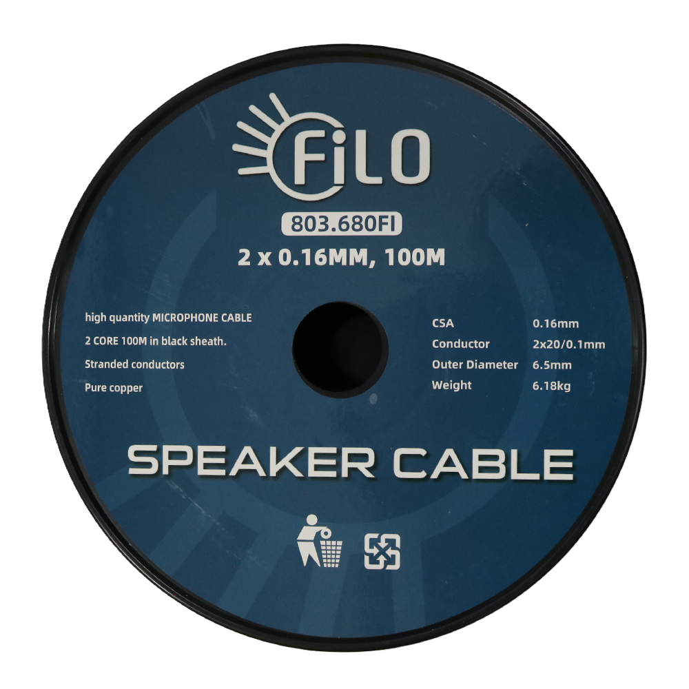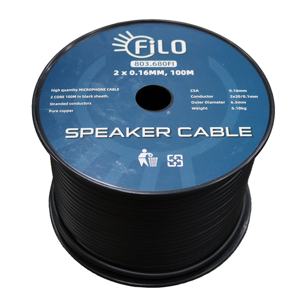 Flexible 2‑core microphone cable featuring OFC conductors and an overall screen for low‑noise performance. Designed for both microphone and instrument applications, it supports balanced or unbalanced systems and comes on a durable 100m reel.