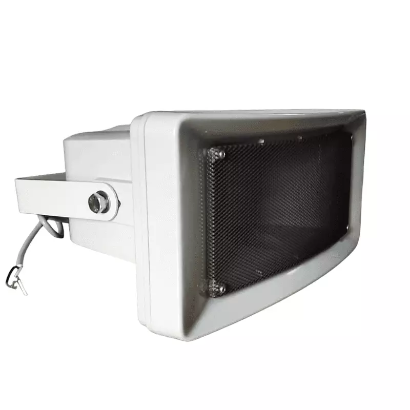 The H series High Fidelity horn lound speaker is a high fidelity wall mounted speaker built-in 70v/100v transformer. The 70v/100v transformer technique reduces line losses on longer distance and allows easy parallel connection of multiple horn loudspeakers. IPX 6 waterproof level suitable for outdoor use; two-way speaker, clear sound, high sensitivity; Waterproof, made from high quality alloy-aluminum surface net