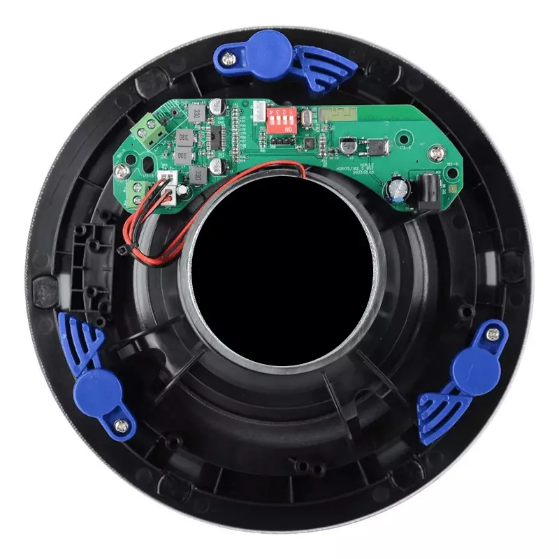 Low profile ceiling speakers with a quick fit system for easy assembly. This high quality 2-way speaker is equipped with a metal flush fitting grille (with magnetic closure). Ideal for the installation of several speakers at longer distances.
