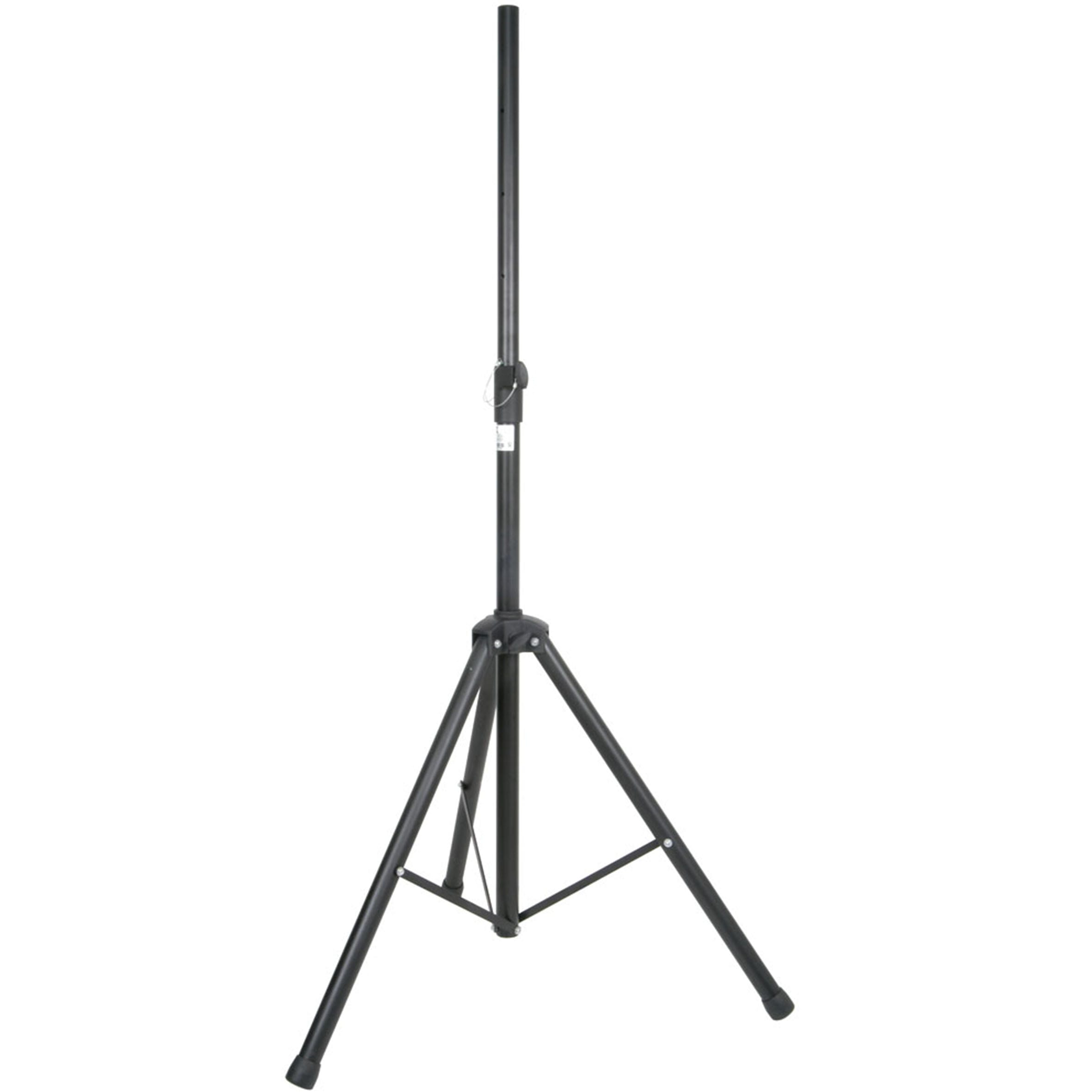 A robust steel stand with lockable height adjustment that can support large speakers with 35mmØ top hats. Height adjustable from 1.0m to 1.8m. Max. weight load: 50kg.