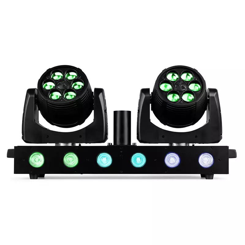 - Moving heads: 6x 12W RGBW LEDs each