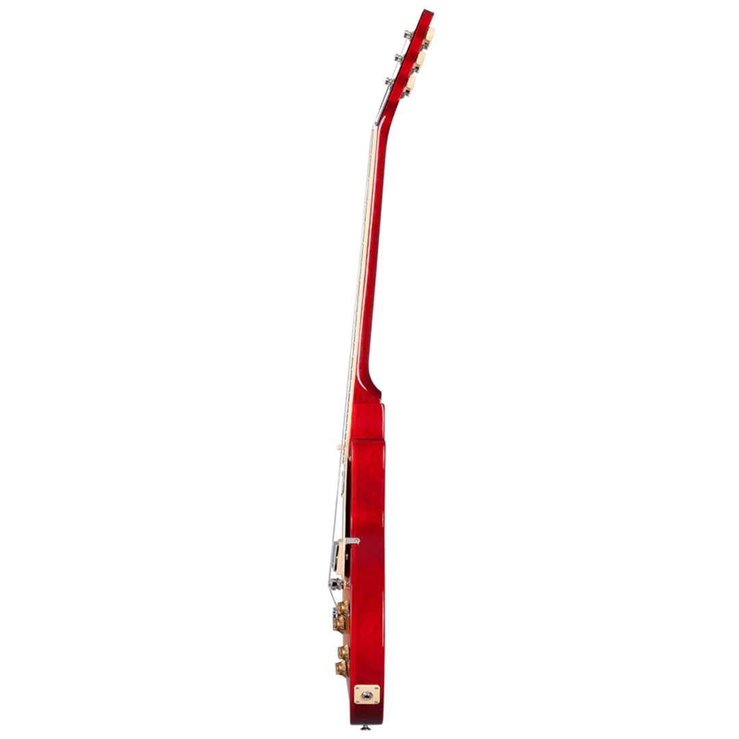 Furthermore, the glued-in mahogany neck ensures rock-solid coupling with the body, which enhances sustain and resonance. The neck features a traditional heel and a SlimTaper™ profile, offering fast, smooth playability. Capped with a bound rosewood fingerboard, the guitar has 22 medium-jumbo frets and acrylic trapezoid inlays. Its 12-inch radius allows effortless chording, bending, and lead playing. Meanwhile, Vintage Deluxe tuners with Keystone buttons provide classic visual appeal while maintaining accurate tuning. The Nashville Tune-O-Matic bridge, lightweight Stop Bar tailpiece, and Graph Tech® nut work together to provide solid tuning stability.