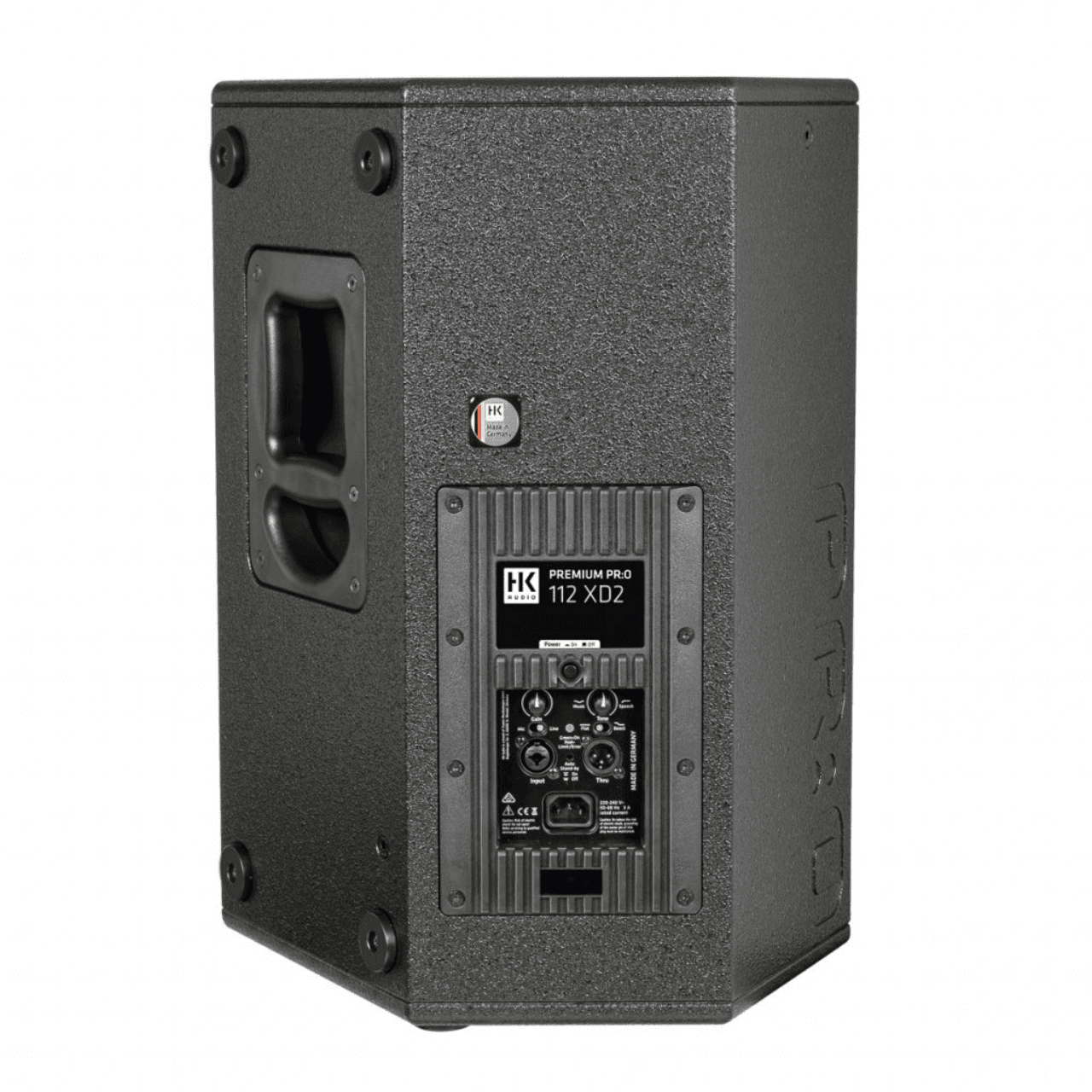 A compact 12″/1″ multifunctional speaker that can be used as a full-range cabinet or as a stage monitor. The well-balanced frequency response ensures low feedback and can be adapted to various applications using the Music/Speech controller. The integrated DSP-based power electronics supply the PR:O 112 XD2 with 1,200 watts of power. This ensures flexibility in all areas of application. The built-in MultiGrip ensures the necessary safety and ease of handling.