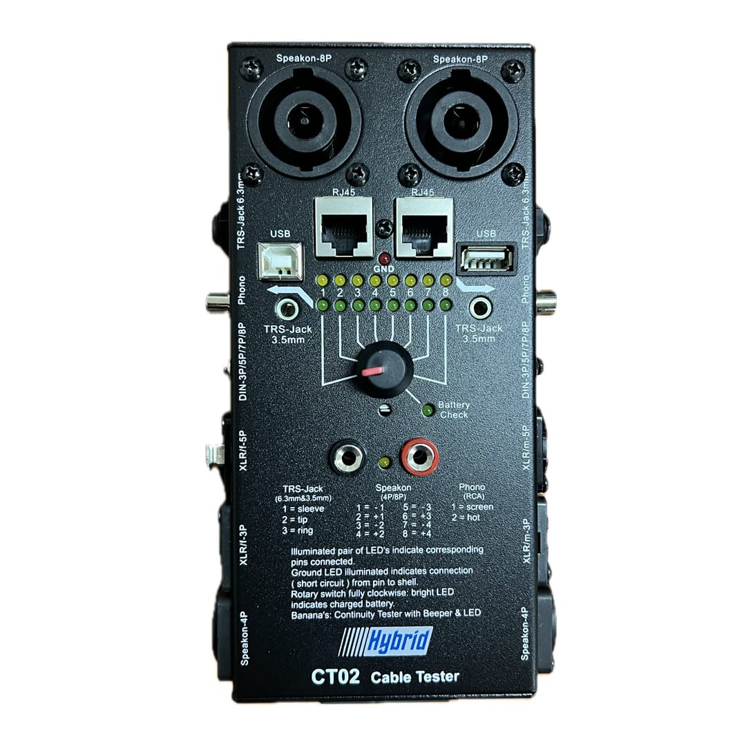 The Hybrid CT02 is a valuable tool for all applications where cables are being used for the first time, be it a permanent or temporary installation. Most system failures occur due to faulty cables so it is good practice to test all cables before using them. Hybrid offers 3 cable testing units with different testing ports to suit your needs.