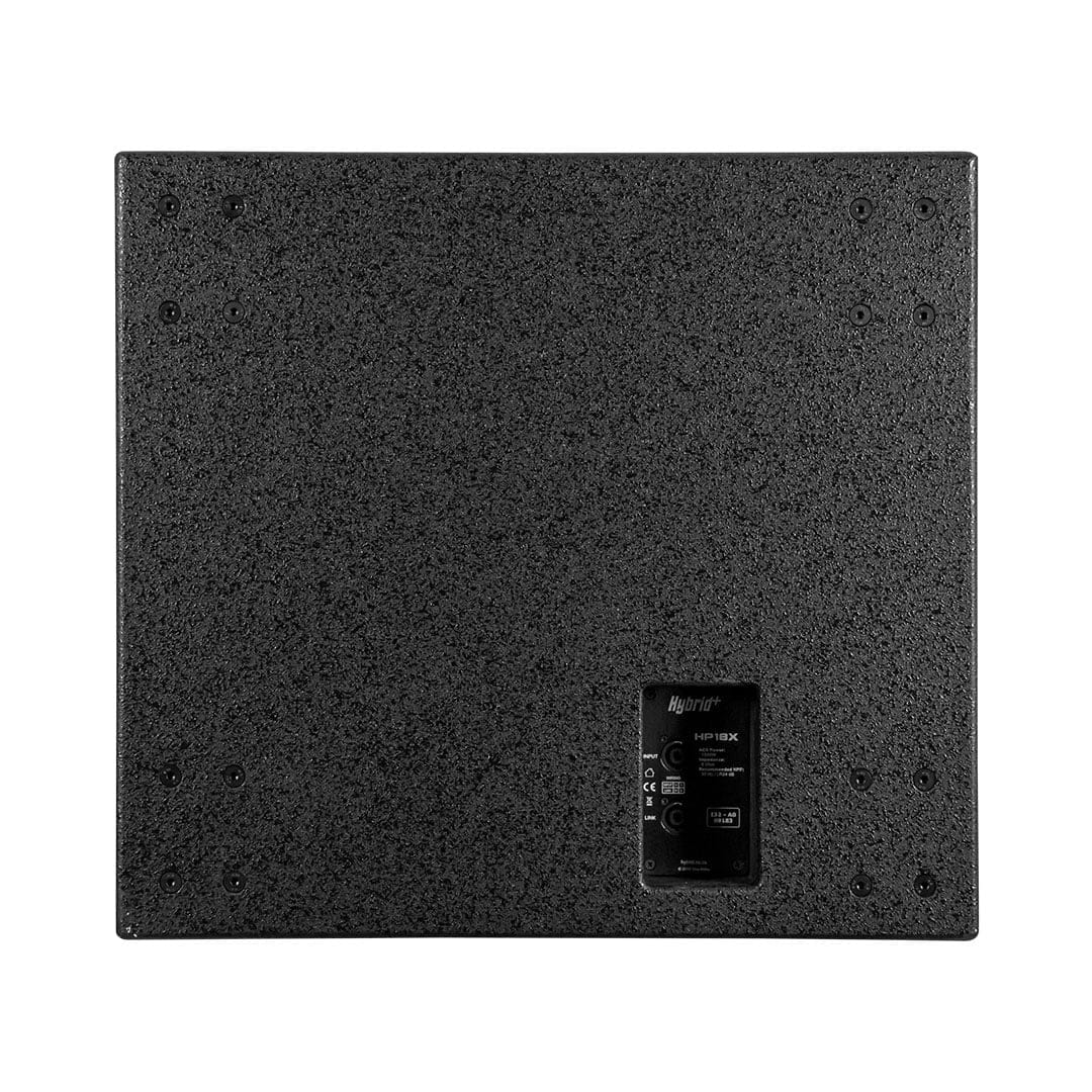 The Hybrid+ HP18X (High-power) is a passive 18″, birch-plywood enclosed, bandpass horn subwoofer. Owing to its compact size it can be used virtually anywhere from the smallest applications that require sub-bass to large outdoor stages with multiple bass stacks. Thanks to its bandpass horn design, the frequency response is not impacted by its compact size and as such boasts an impressive 28-300Hz range.