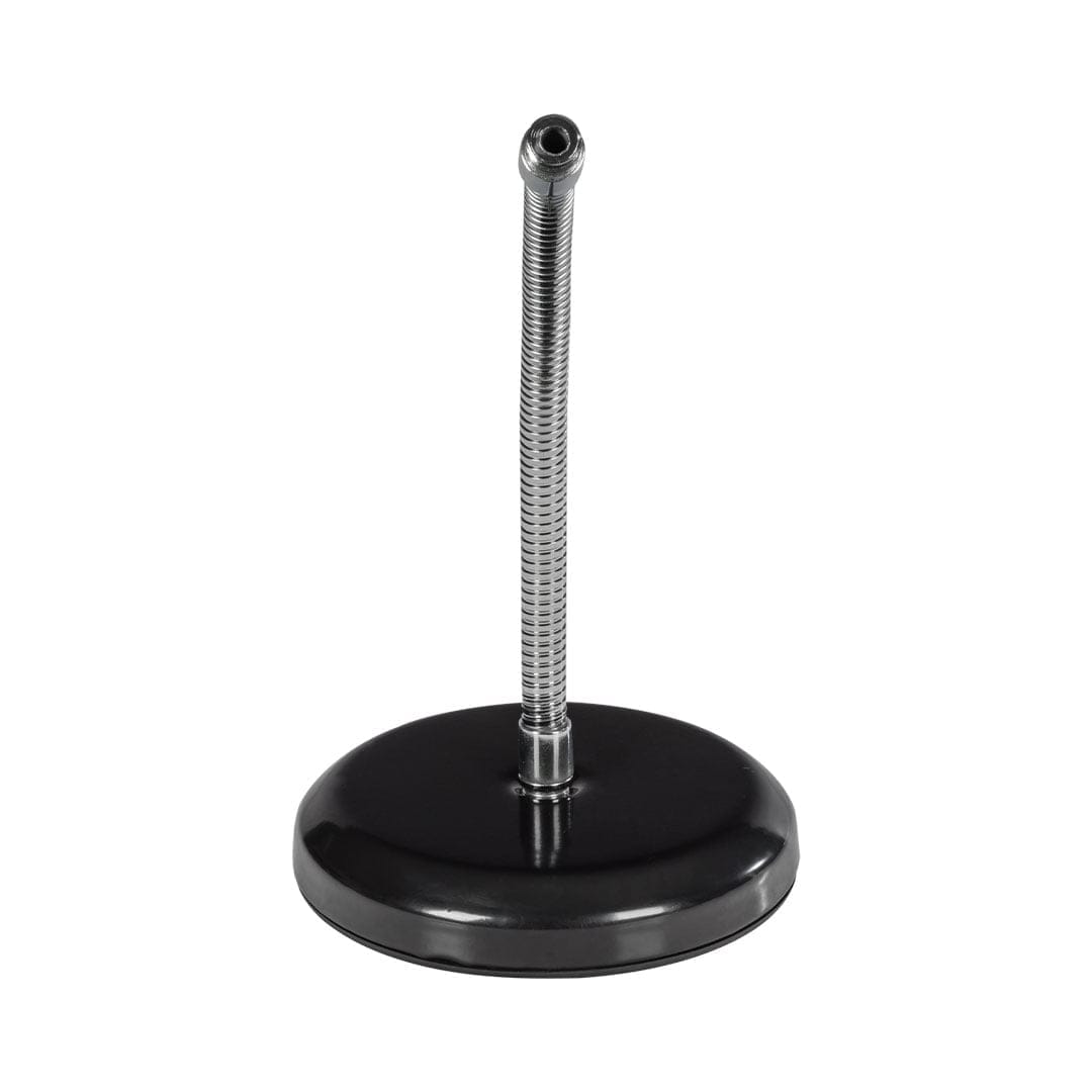 The Hybrid MS06 is a round-base, mini sized gooseneck microphone stand, ideal for desk-top applications. The MS06 comes standard with two differently sized microphone holders which are suited for both corded and cordless microphones.