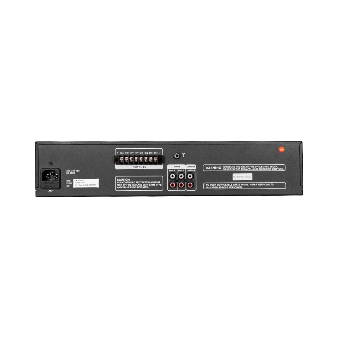 Outputs include an 8–16Ω output, a 70V output, a 100V output