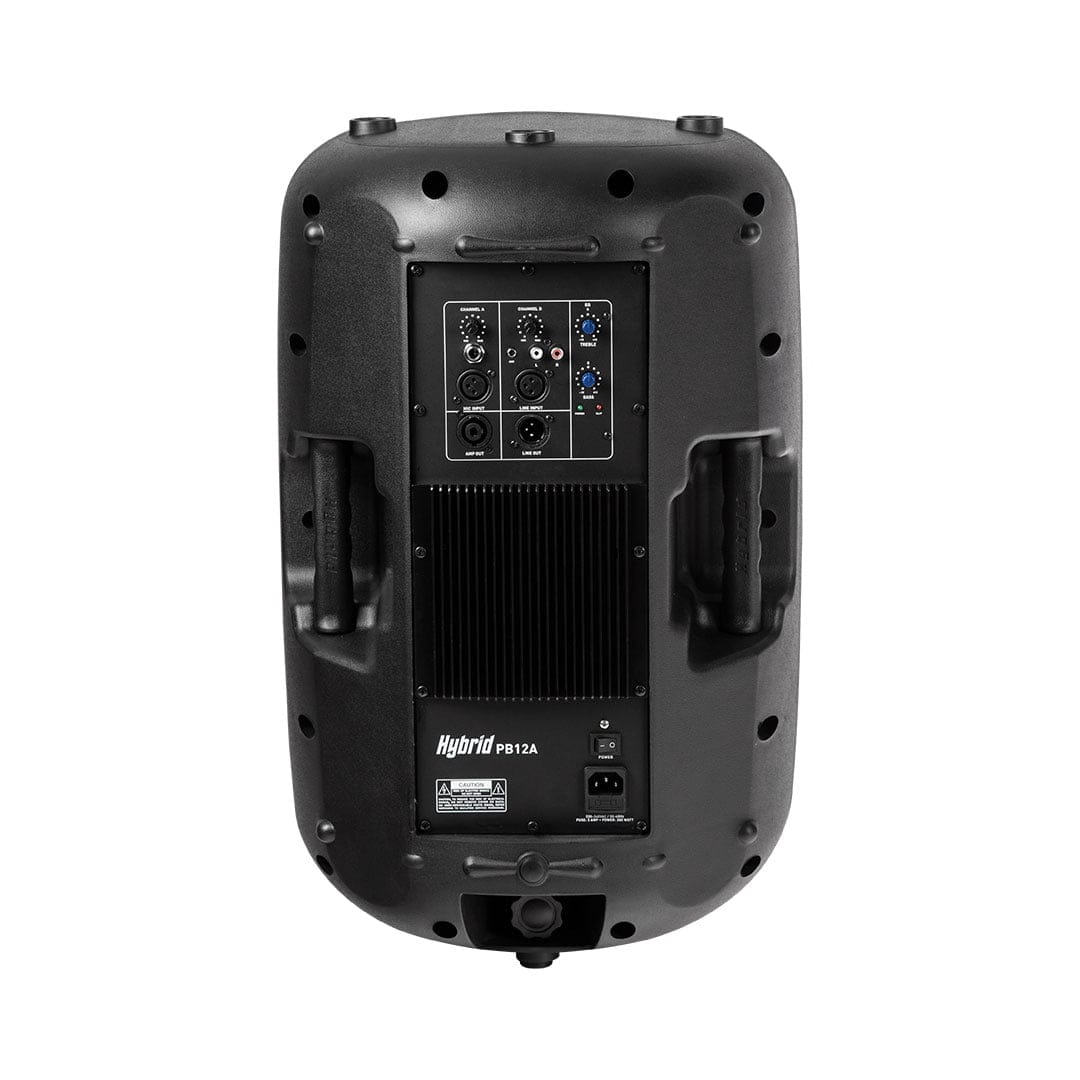 The Hybrid PB12A is an active, 2 channel input (12″ low frequency speaker with a 1″ high frequency compression driver) ABS enclosed speaker cabinet.
