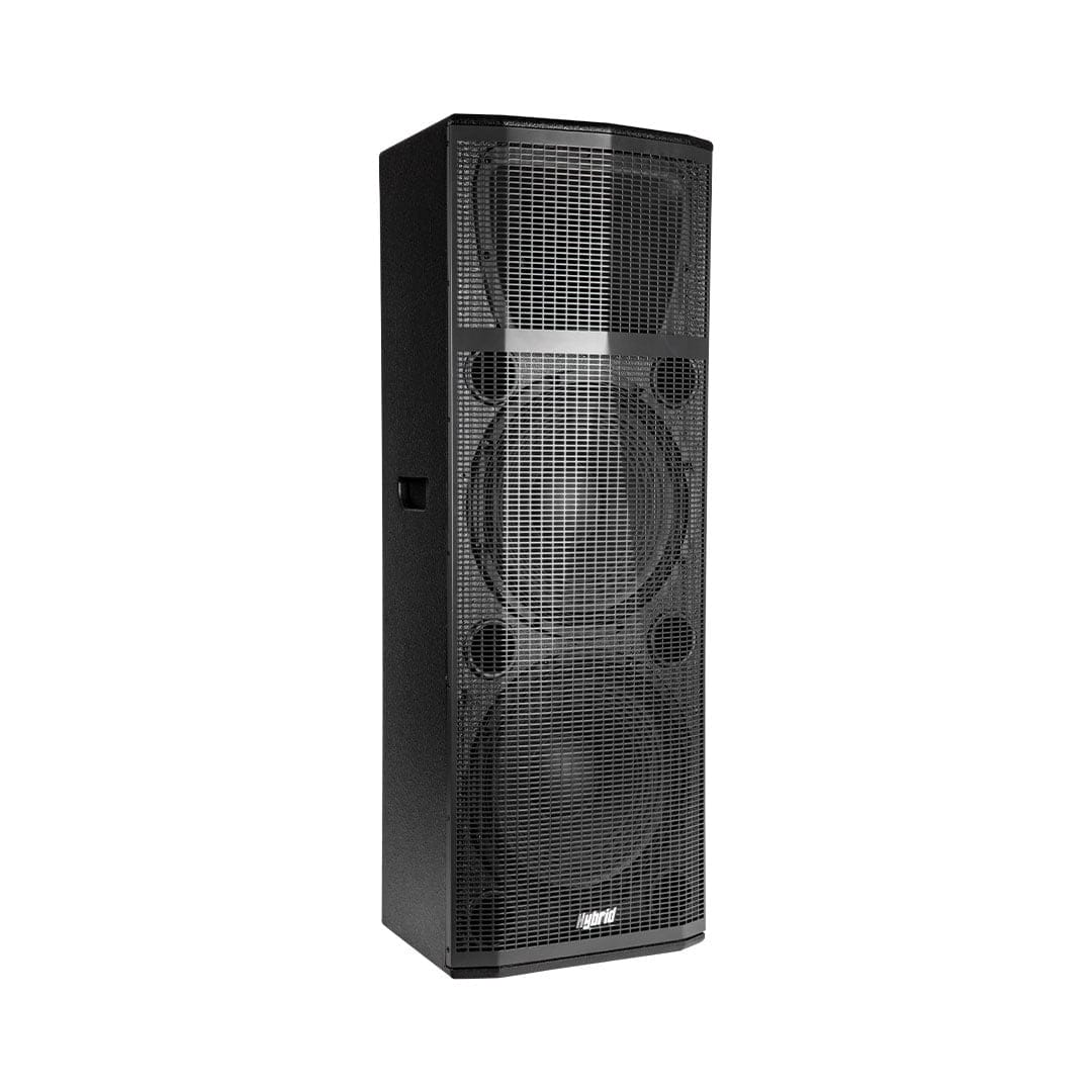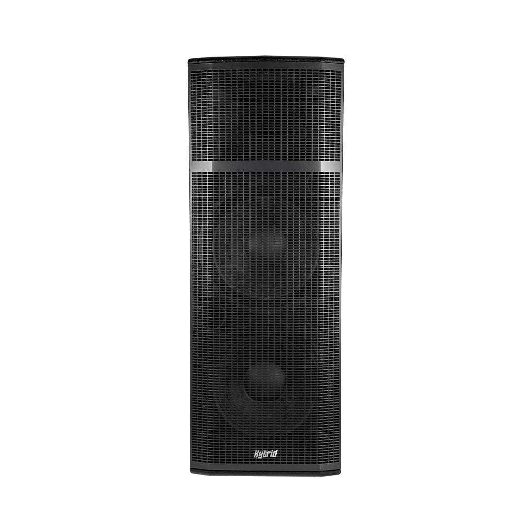 The Hybrid PLB215 is a DUAL 2-way (2 x 15″ low frequency speaker with a 1″ high frequency compression driver), wooden MDF enclosed speaker cabinet.