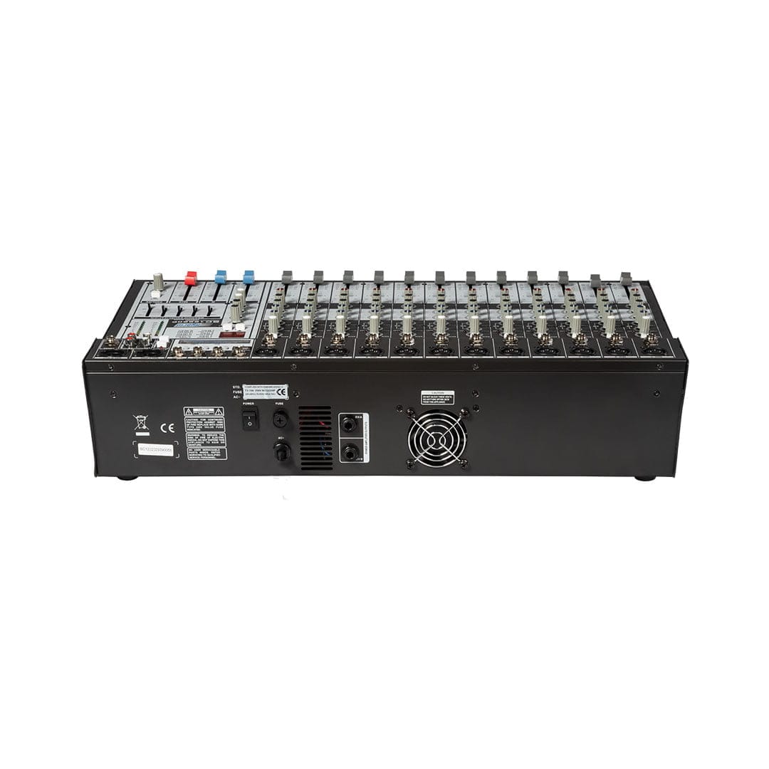 The SC12220P hosts a number of features such as a built-in MP3 media player with a USB ports, a 16 Digital effects processor, switchable phantom power between input channel banks for condenser microphones and many more. This makes it ideal for small productions that require a powered mixer solution, such as those commonly found in schools, smaller places of worship and small stages.