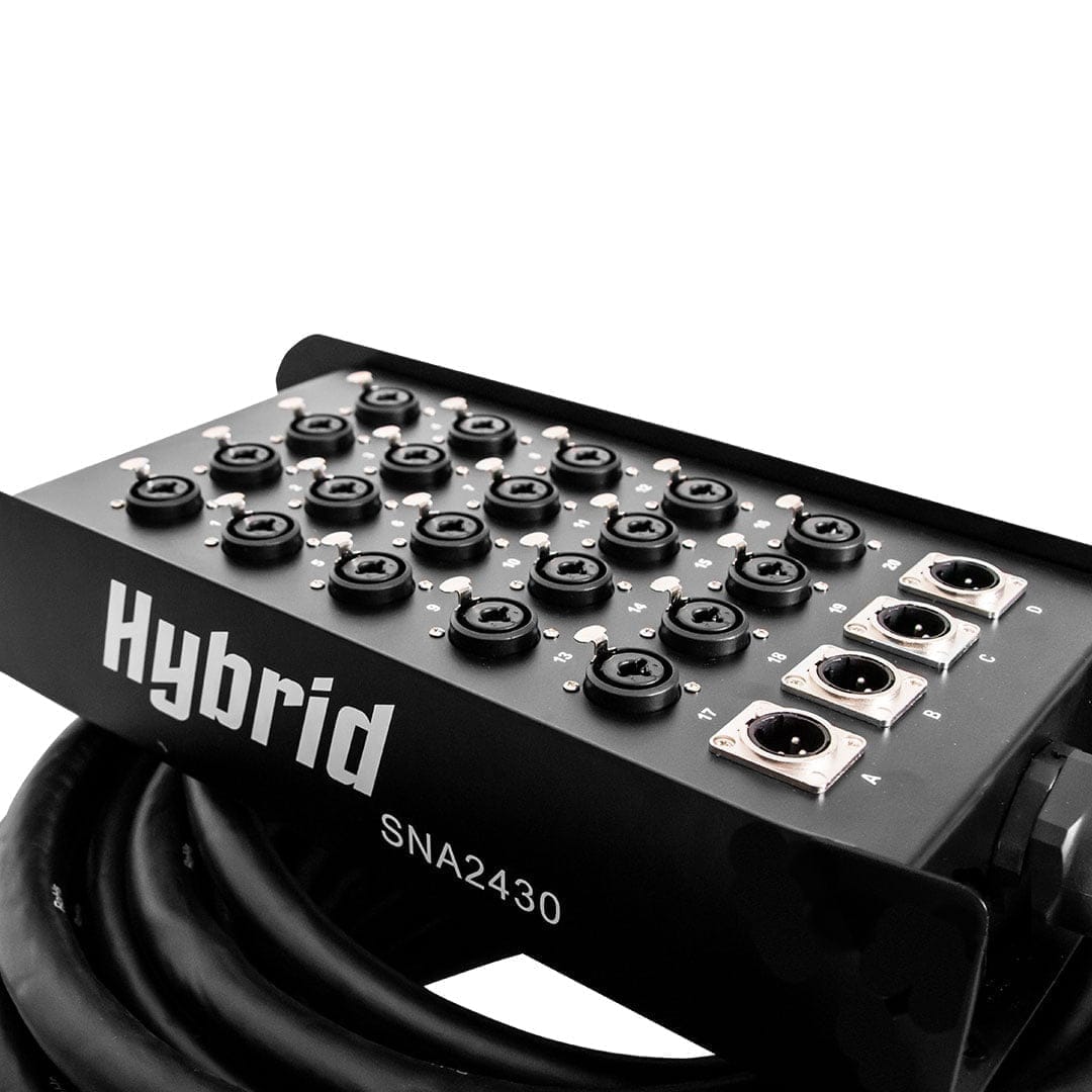 The Hybrid SNA2430 is a professional 20 input + 4 return, 30m snake cable, suitable for medium stages as a signal/audio link between the performing artists and the sound engineer. The SNA2430 is manufactured from high grade materials such as pure copper, quality connectors and a durable metal housing, making it a durable and robust product as well as offering low signal losses over the cable length.