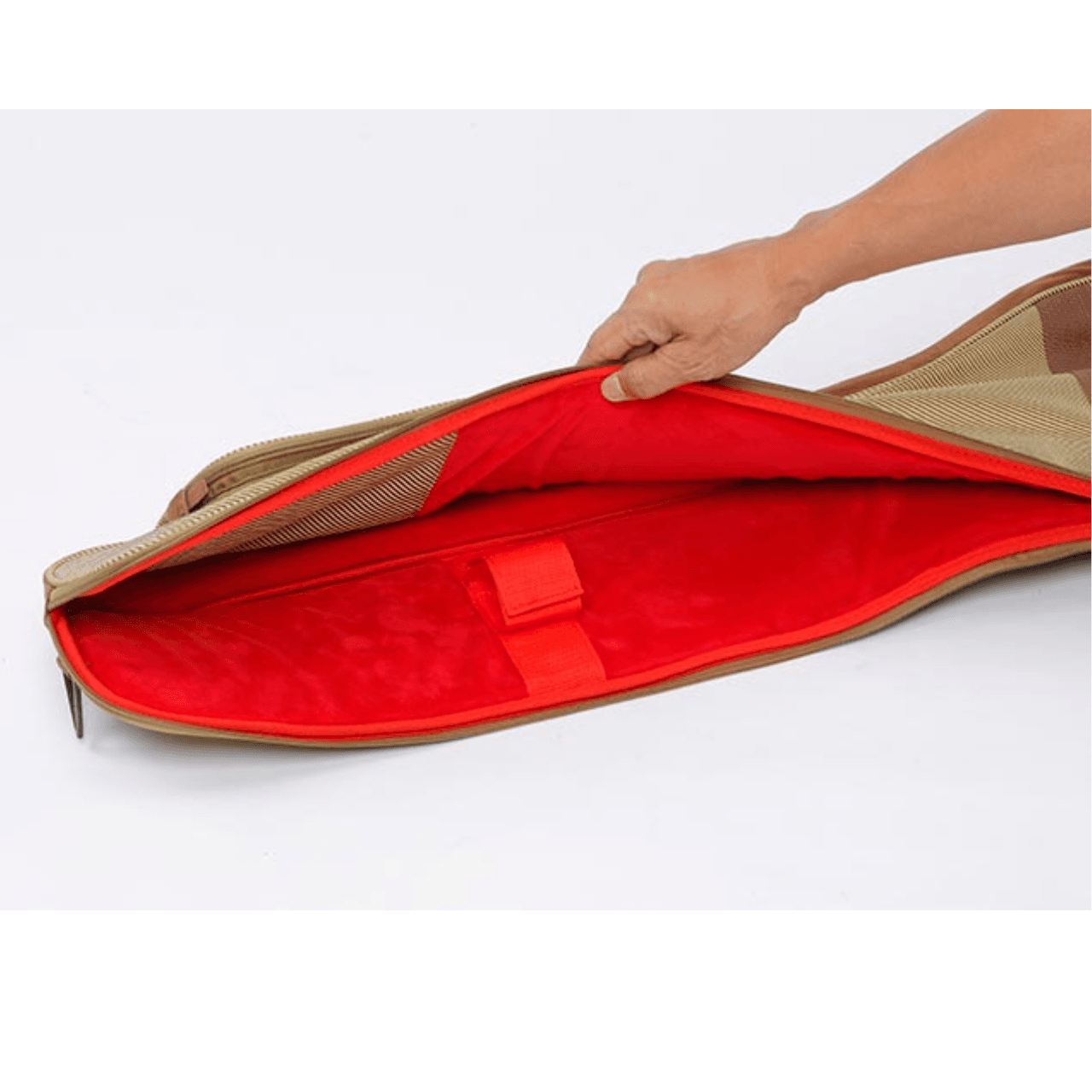 - Belt inside the bag that securely grips and braces the neck of your guitar