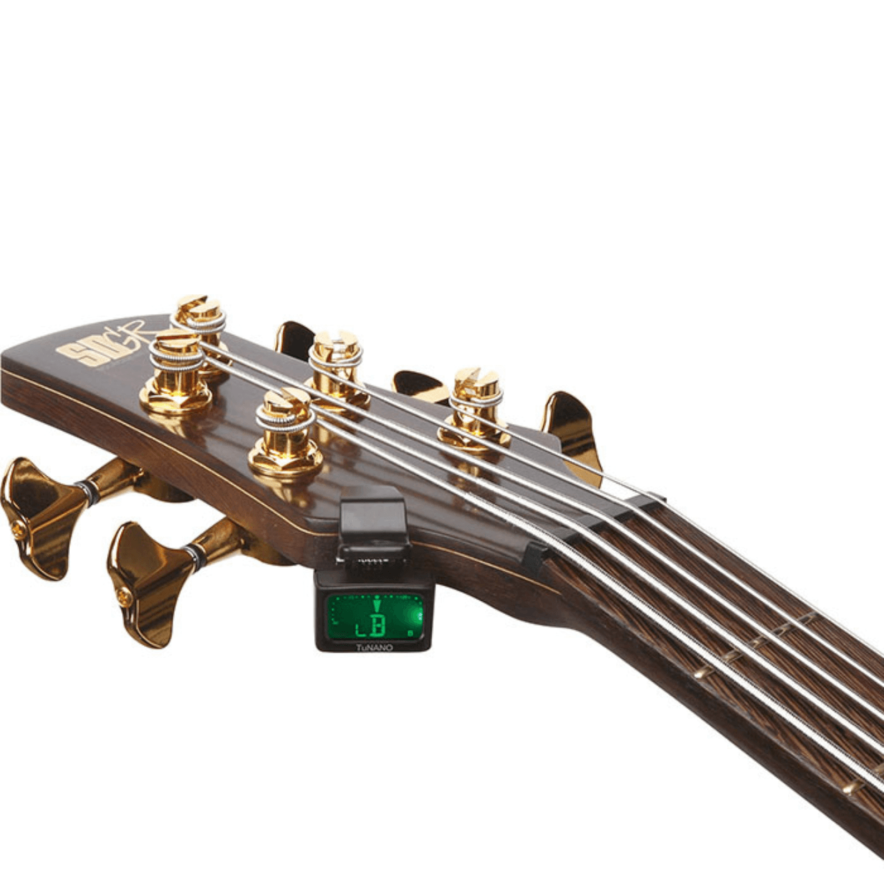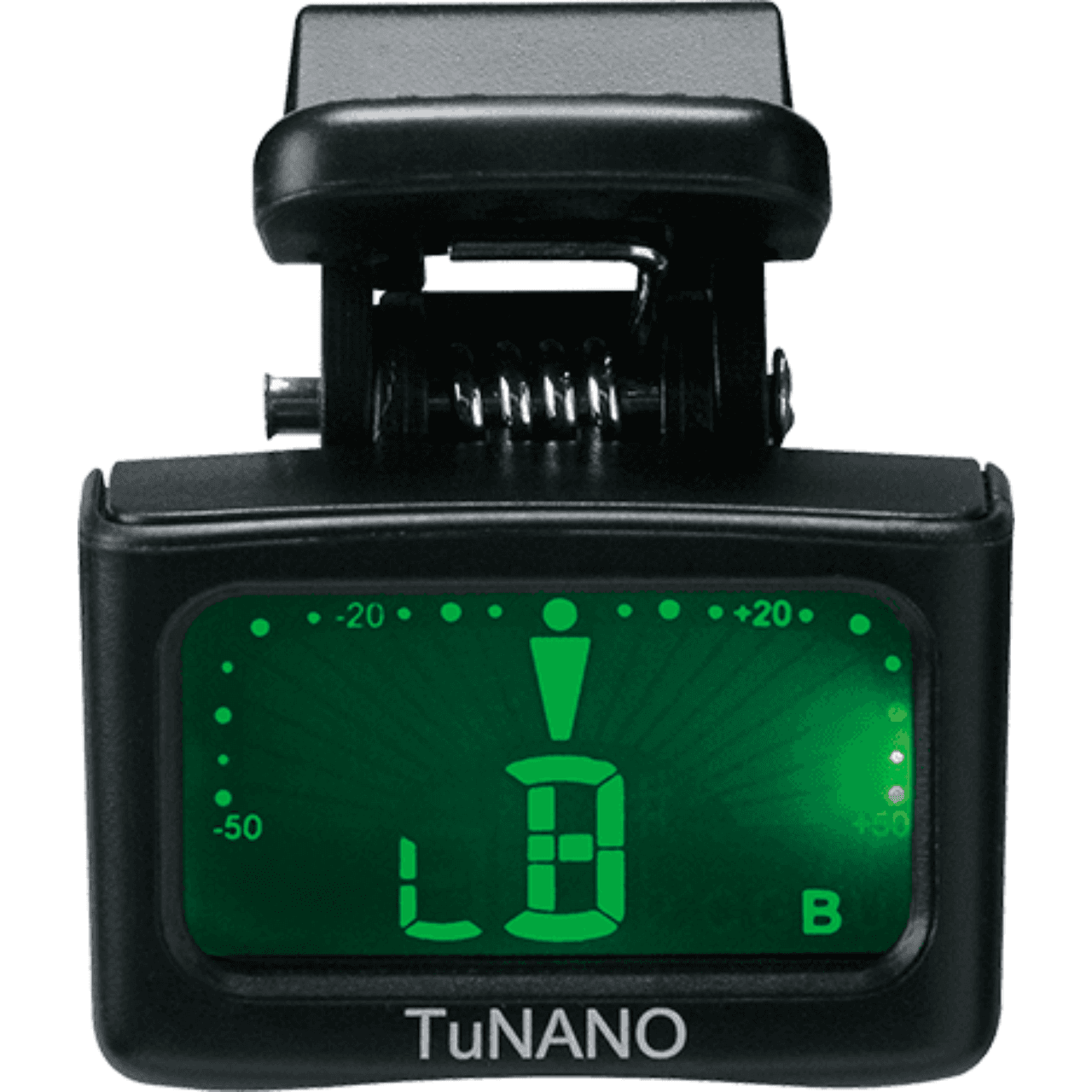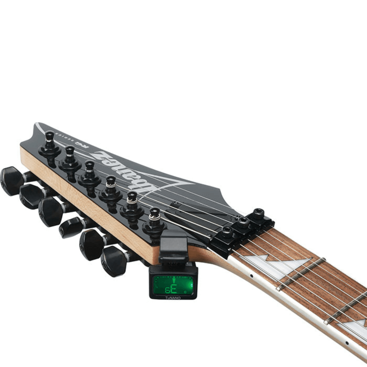 Clip Tuners have become a normal part of playing guitar live. Clip tuners should be highly-visible and easy to use. The Ibanez TuNANO provides more choices of location thanks to its unique size and the easy to read LCD screen maintains maximum visibility. The tuning range goes as low as the low B on a 5-string bass. When the instrument is in tune, the display will flash in green. The display will flash in orange when it is not.