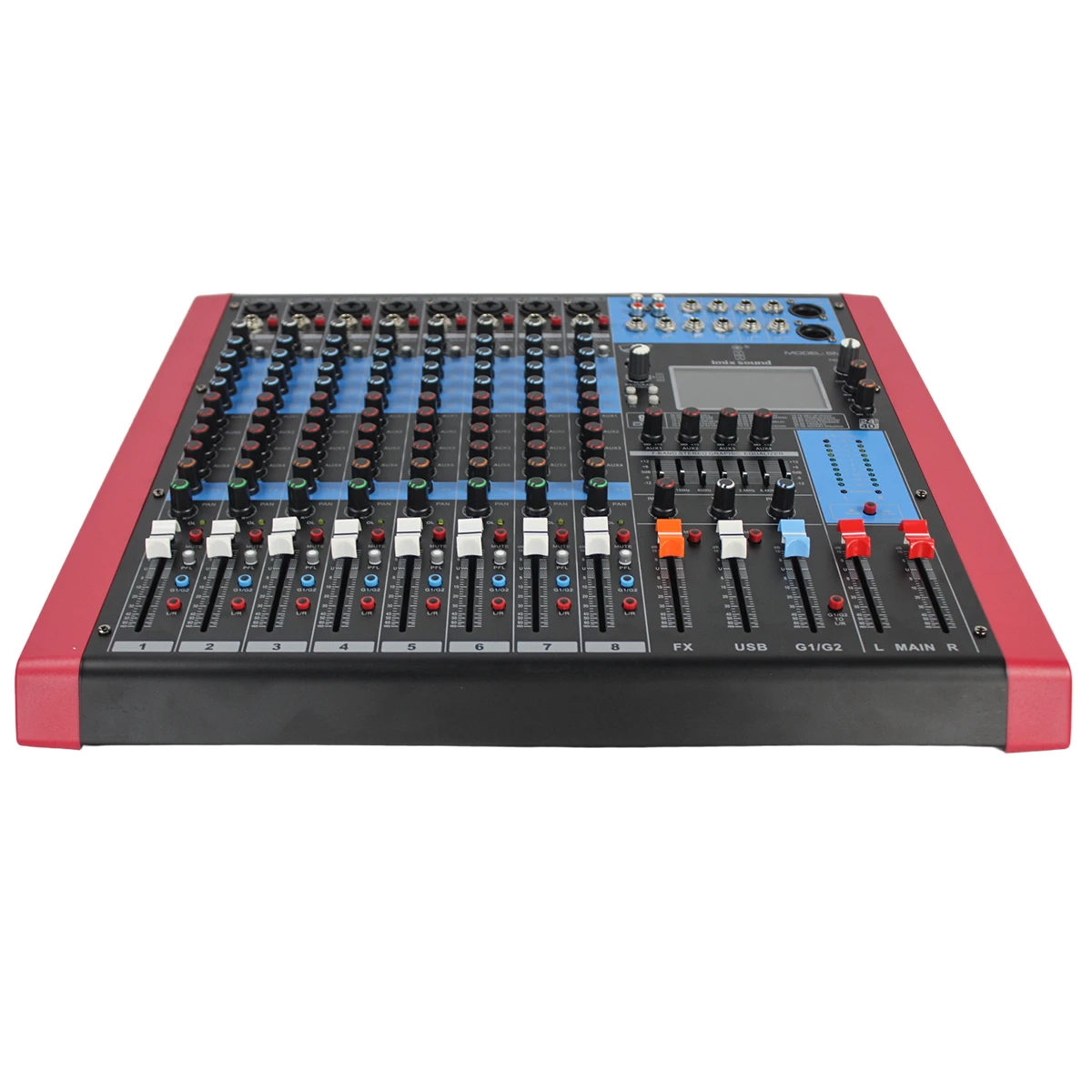 The Imix Sound SM8 Mixing Console is a high-quality and versatile audio mixer, ideal for professional and semi-professional use. It offers powerful features for superior sound control, making it perfect for studio recordings, live performances, and DJ setups.