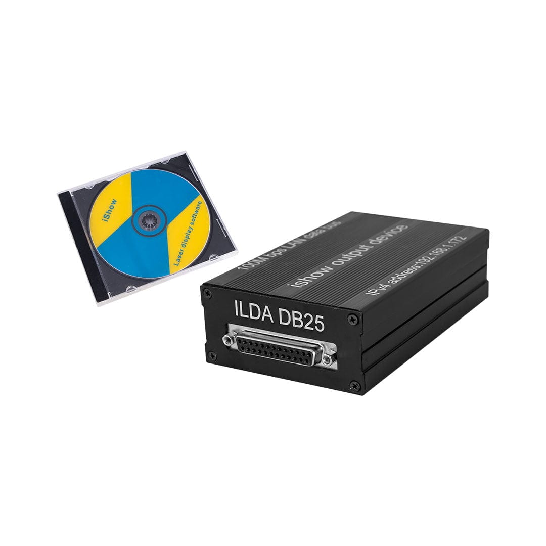 The iShow Laser Show is a software controller that plugs in to your computer’s USB port and laser projector’s ILDA port. Simply run the software from your computer and control the laser creating graphics, beams and text shows. iShow is perfect for beginners and low budget systems.