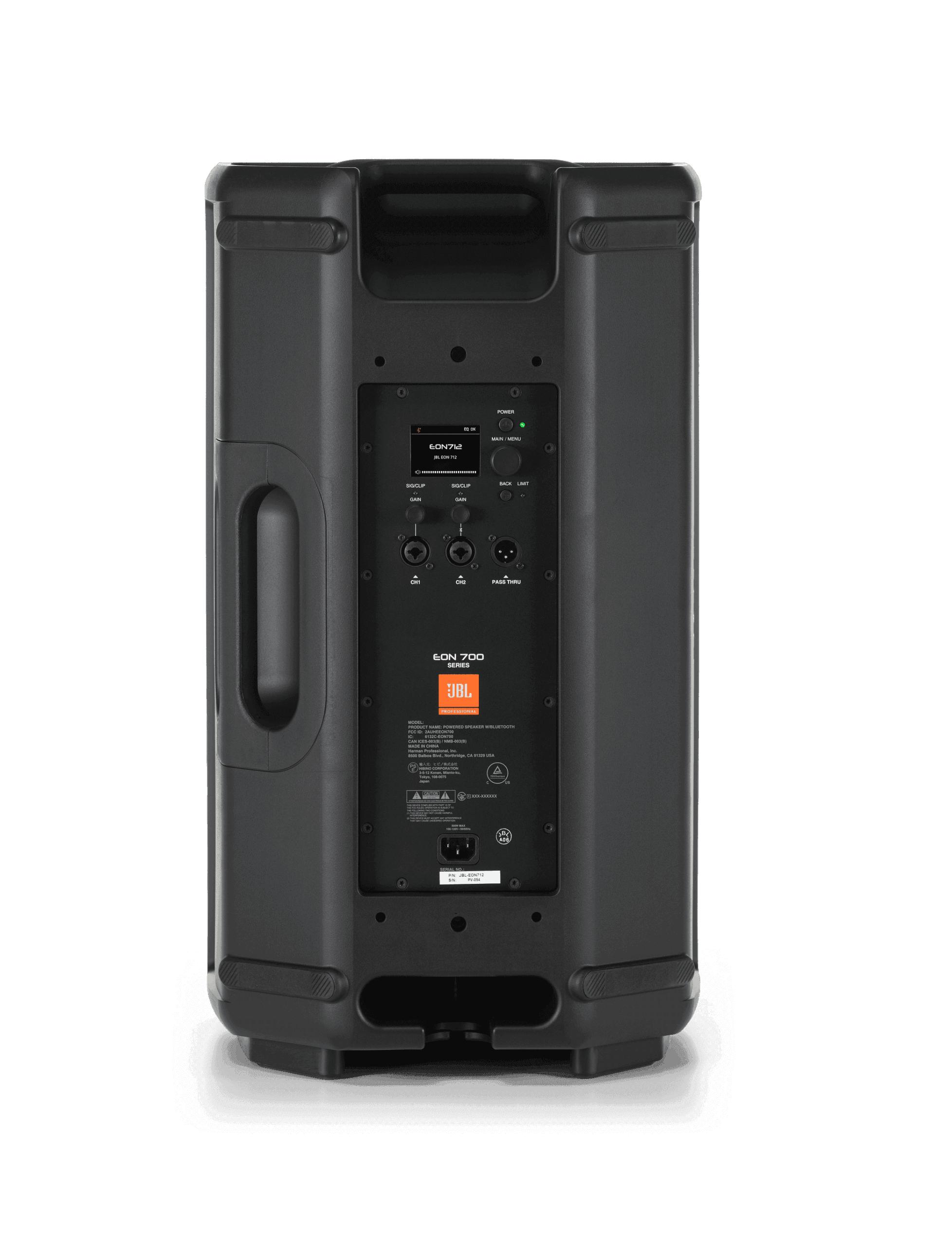 The EON712’s advanced DSP package provides comprehensive control over EQ, limiters, delay, dbx Automatic Feedback Suppression, ducking and other functions. Access settings on-speaker using an integrated backlit LCD screen, or from anywhere in the venue using the JBL Pro Connect App. Built-in Bluetooth 5.0 audio streaming and control take advantage of the newest protocol’s security features, low latency, broad range and improved audio fidelity.