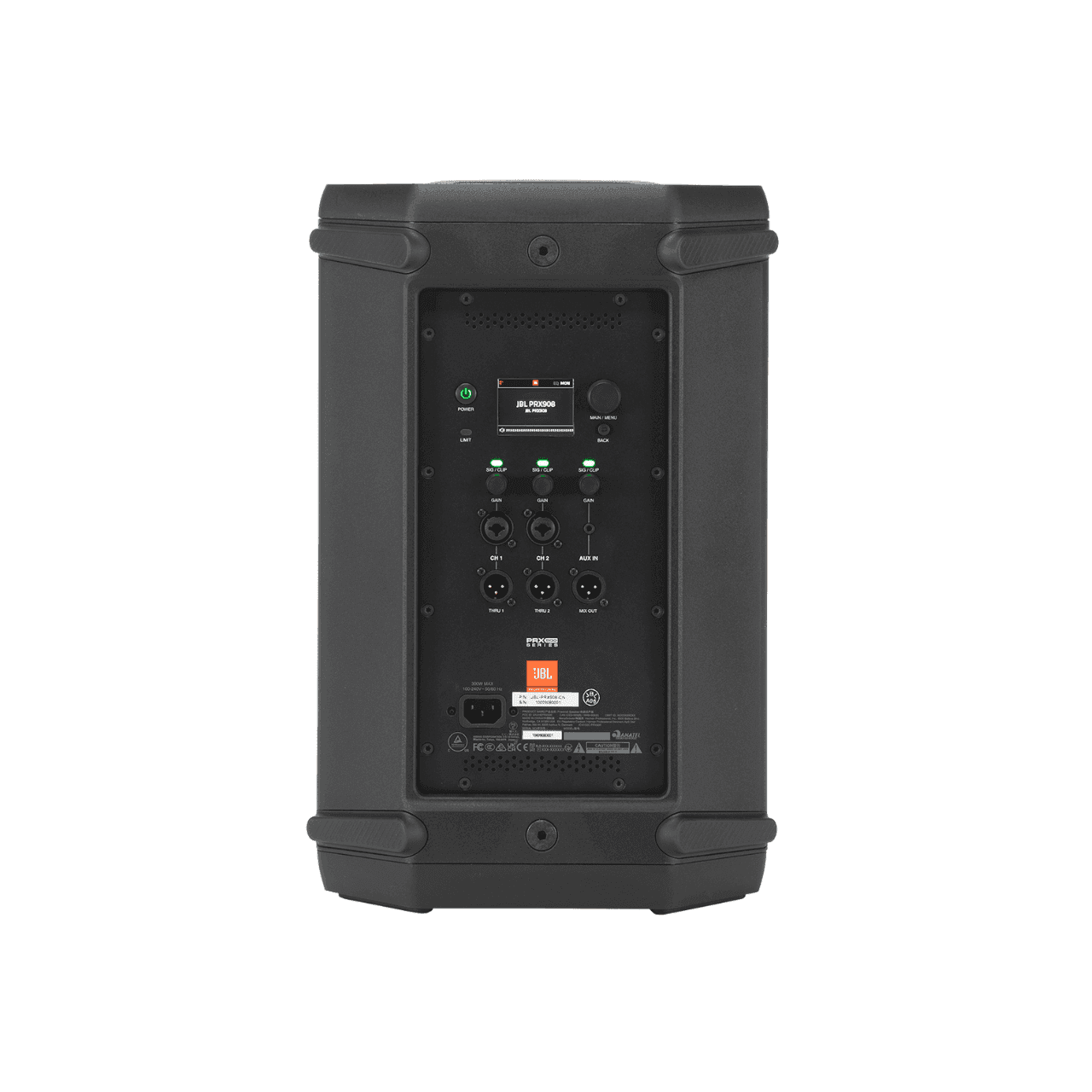 PRX908’s class-leading DSP package, accessible via an onboard color LCD or the JBL Pro Connect app, features 12-band parametric EQ for system tuning and nuanced tonal control; integrated dbx DriveRack technology includes live and fixed Automatic Feedback Suppression, soft system limiter with Soundcraft Overeasy option and speaker delay settings and presets.