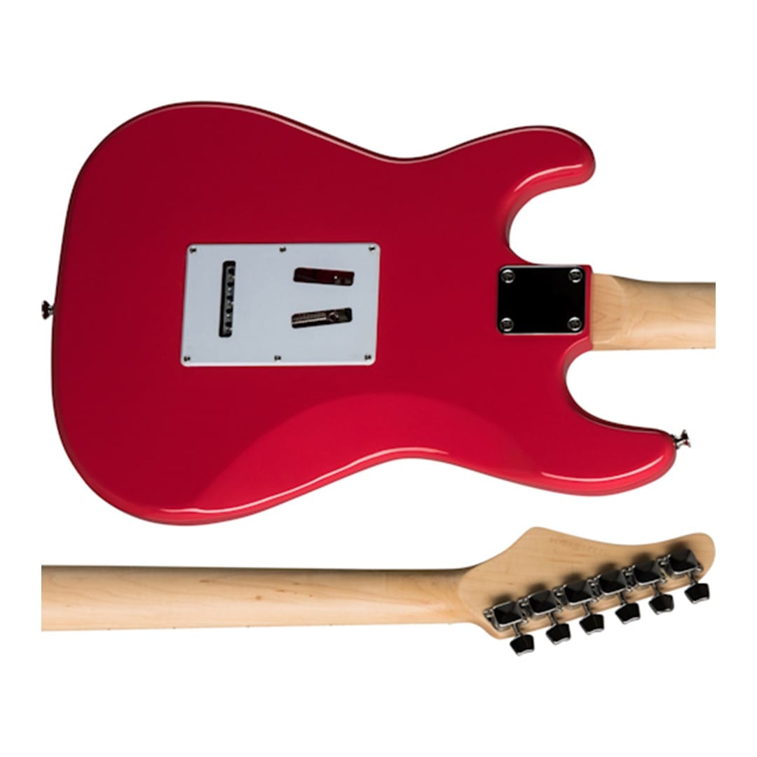 The Kramer KF21-RU Focus VT-211S Ruby Red combines a classic double-cut mahogany body with modern features like two SC-1 single coils, an HB-1 humbucker, and a Kramer Traditional Tremolo bridge