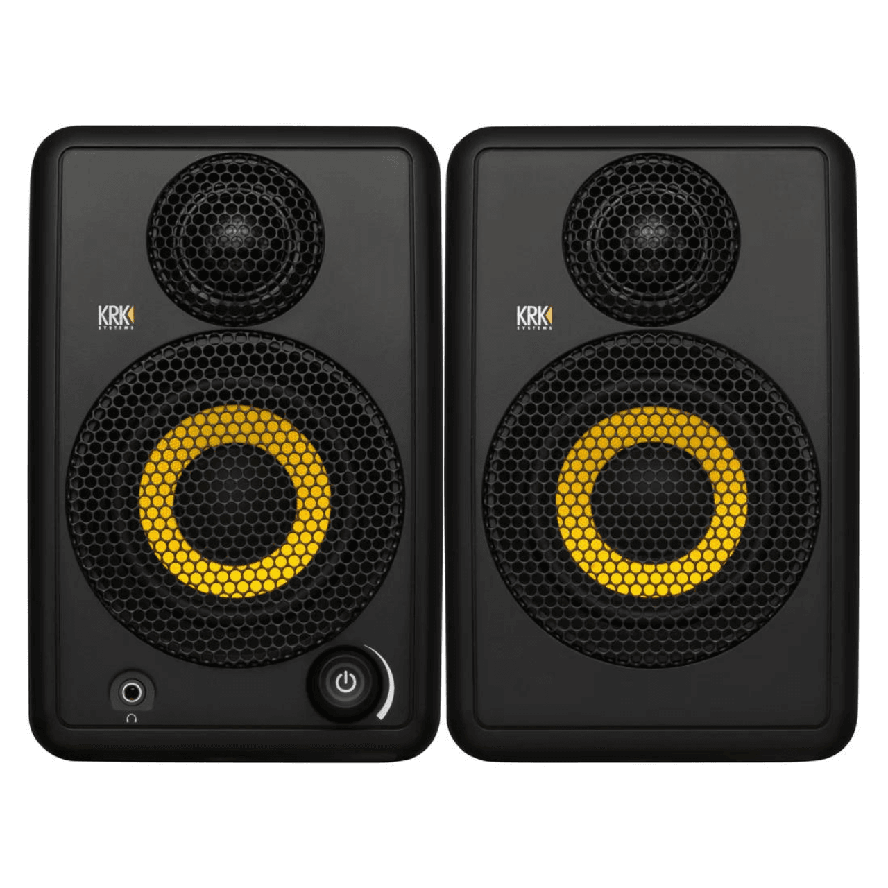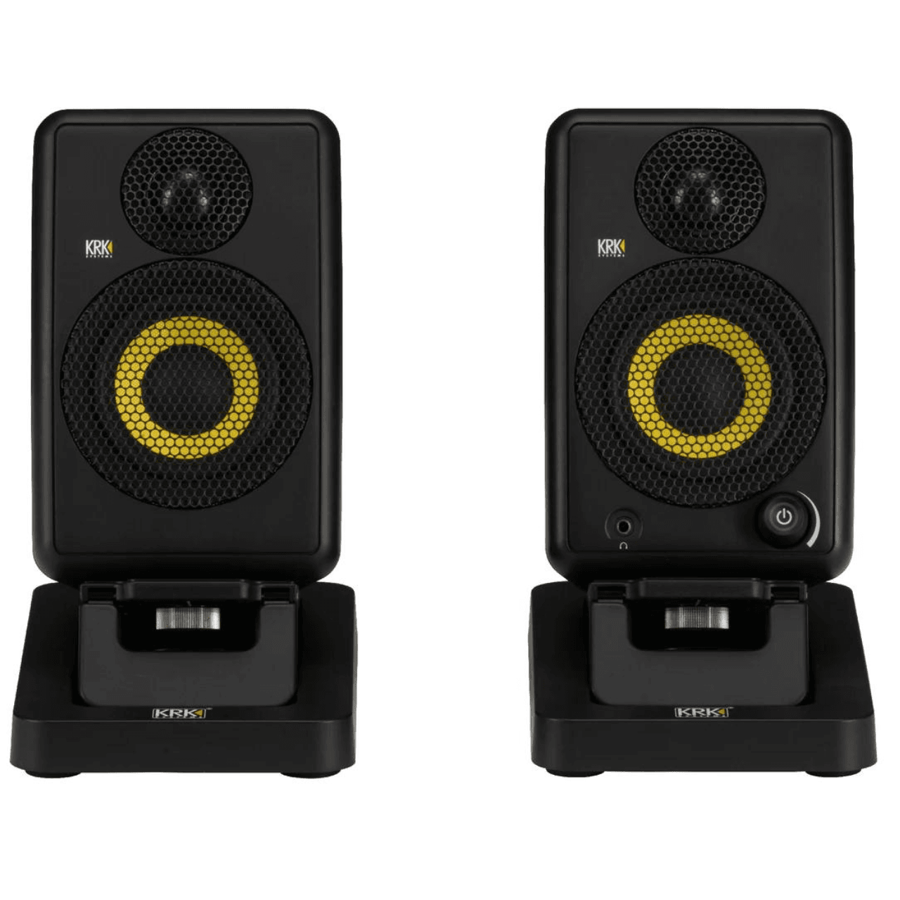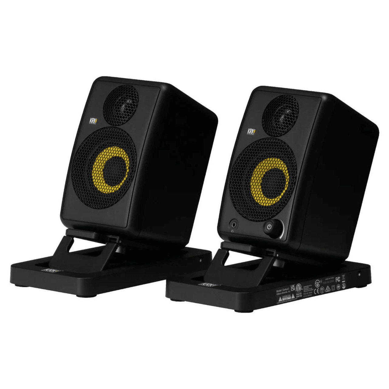 The KRK GoAux 3 portable near-field monitors are designed to provide great sound anywhere you go. The perfect monitors for travelling musicians and engineers, they deliver renowned KRK sound quality in a mobile-friendly size. Since they’re made to go wherever you do, the GoAux 3 monitors come with a convenient nylon carrying bag that holds both monitors as well as the included monitor stands and any extra cables you want to take along with you. The stands are adjustable for the optimum monitoring positioning and angle. The GoAux 3 monitors pair a 3” glass aramid woofer with a 1” soft textile dome tweeter in a 60 W RMS (total system power) bi-amplified two-way design.