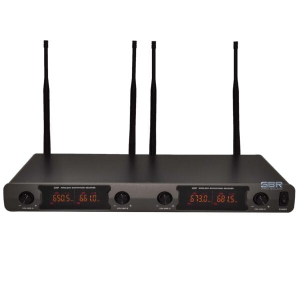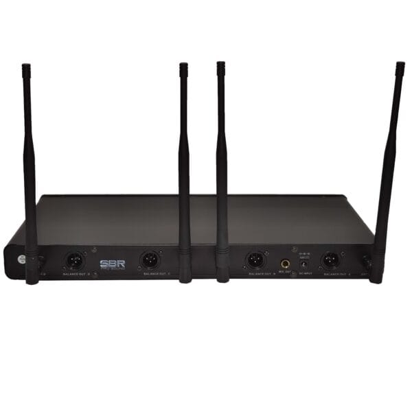 The system operates on the UHF frequency range, which provides a stable and interference-free wireless connection.