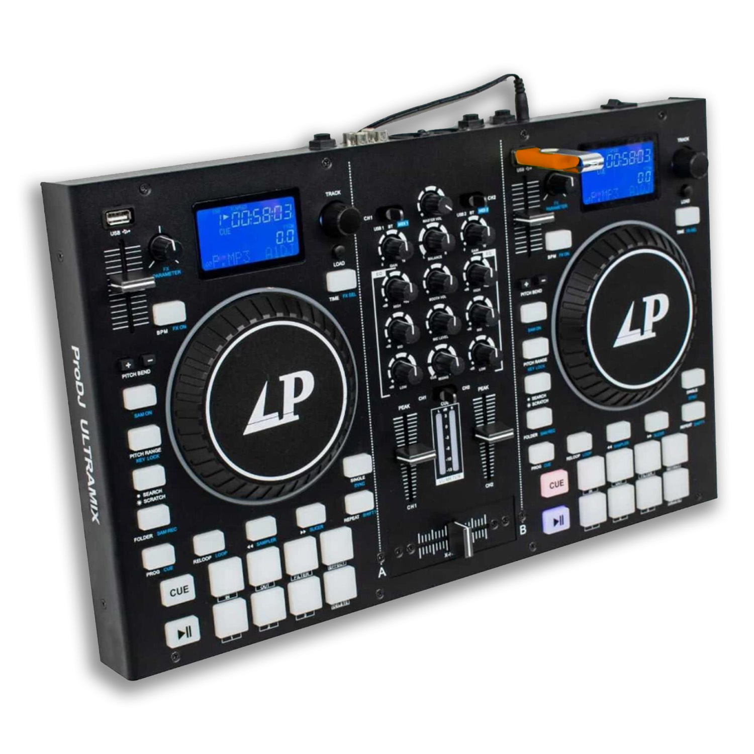 Get ready to rock the party with the Lane Pro DJ UltraMix, a 2-channel all-in-one DJ controller that packs a punch! This powerhouse is designed for DJs of all levels, offering a seamless blend of features and functionality.