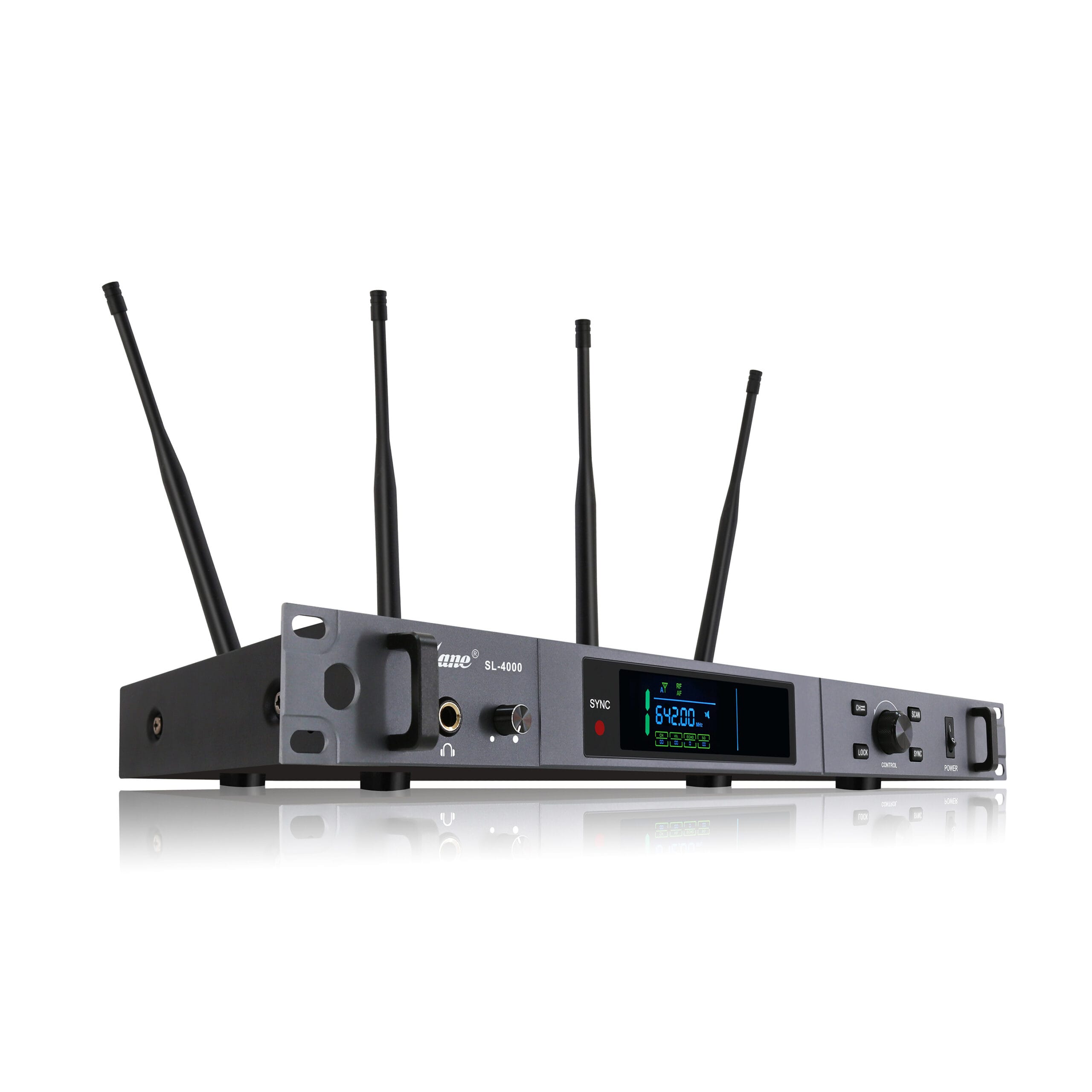 The SL-4000 represents the perfect balance of professional performance and practical functionality in wireless audio solutions. This rack-mountable true diversity UHF system delivers crystal-clear sound reproduction across four independent channels, making it the ideal choice for venues, houses of worship, educational institutions, and professional performers.