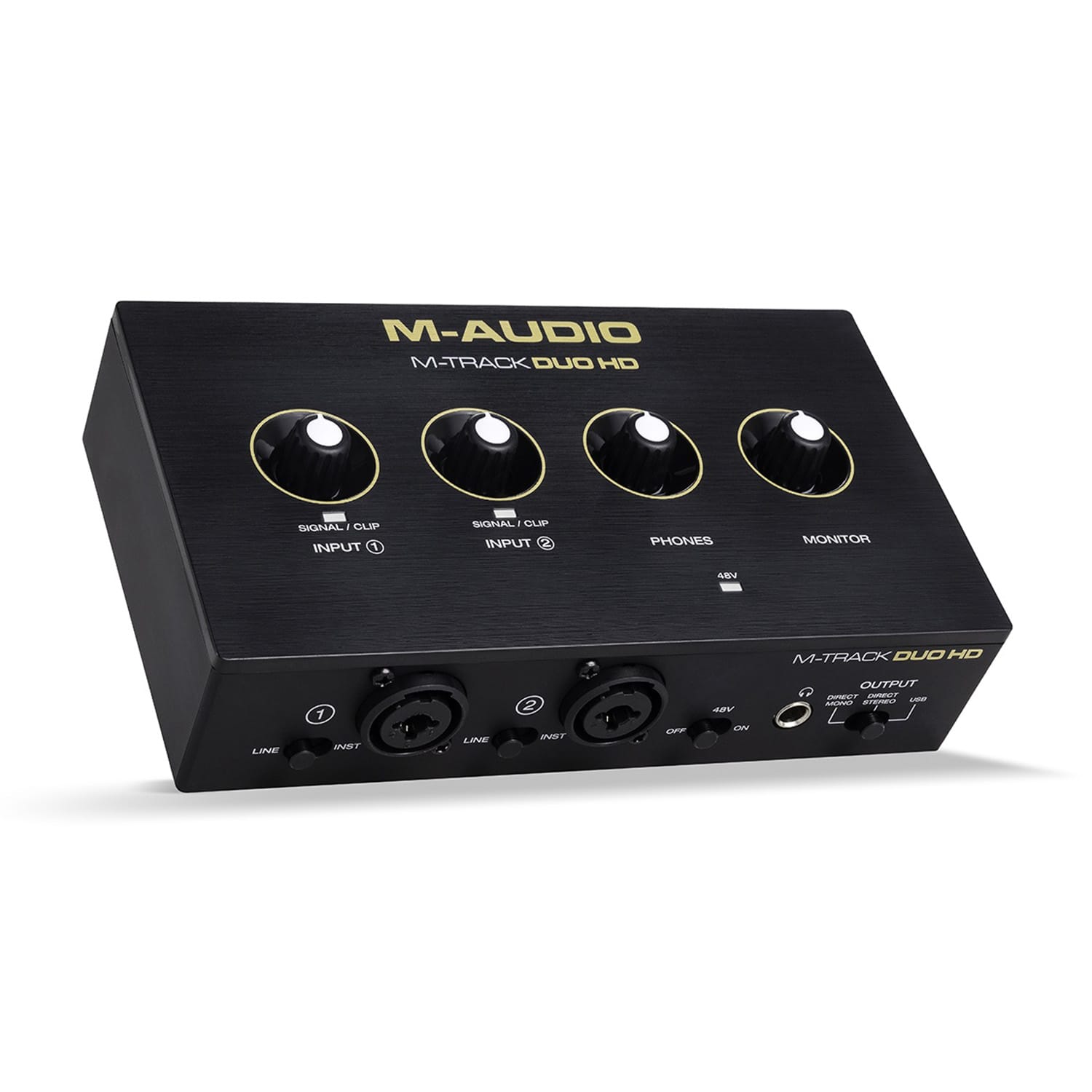 The M-Track Duo HD is designed to be an unobtrusive addition to any home studio. Small enough to fit in your backpack, this unit is perfect to take on the go for off-site recording or songwriting retreats. Don’t be fooled by the Duo HD’s compact size: this powerful audio interface is outfitted with a rugged enclosure and durable electronics that are built to last.