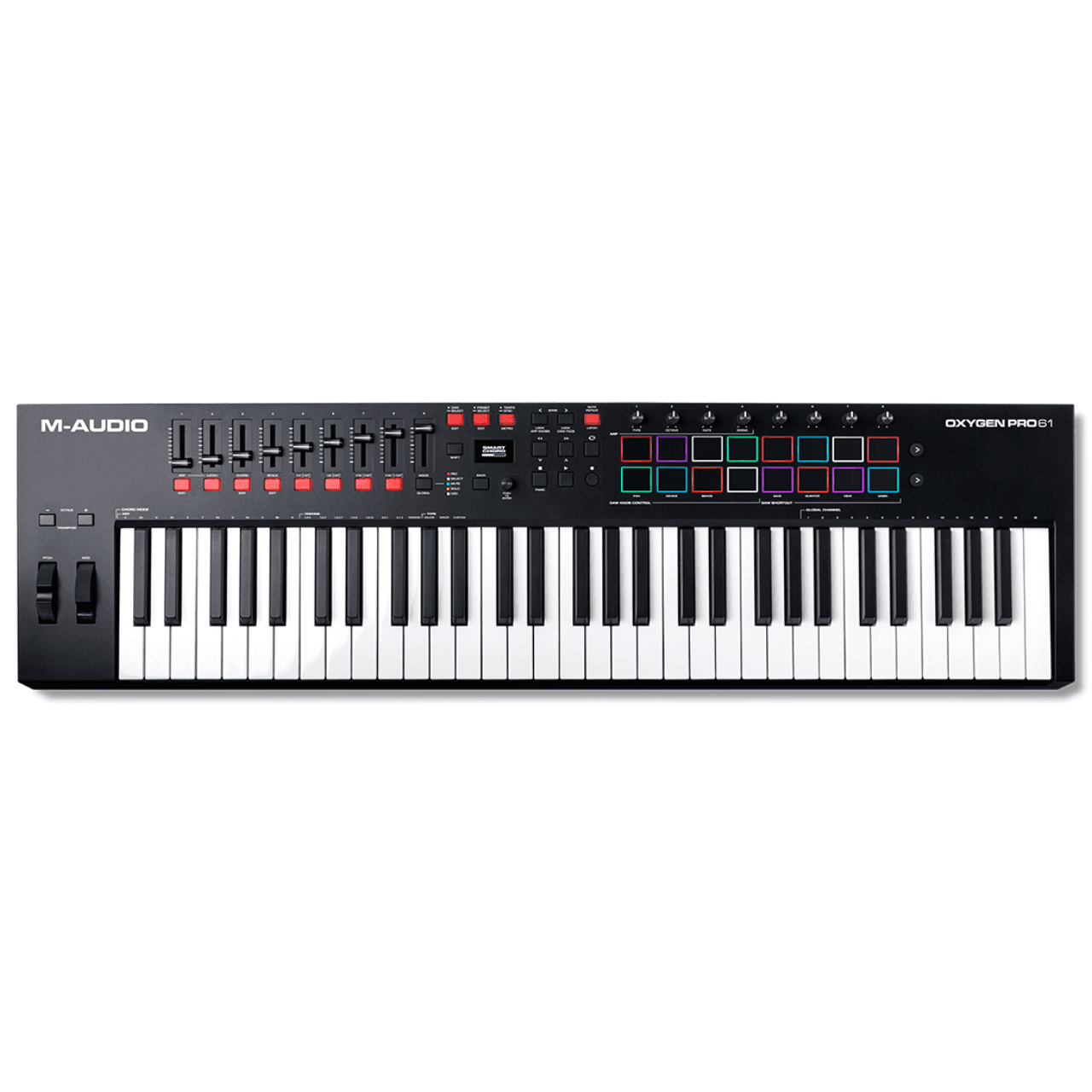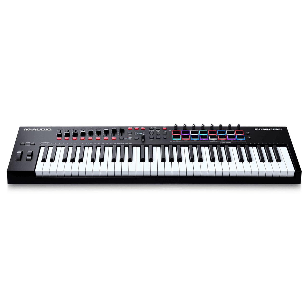 The Oxygen Pro 61 is a powerful, 61-key USB powered MIDI controller that allows you to create the music you want to make even easier! The new Oxygen Pro controllers open up worlds of expression and creativity and make bringing your production ideas to life more seamless than ever. Taking feedback from users and artists alike, these controllers are the ultimate studio and live performance tools, allowing you to keep your focus on creating music—not programming your software. It doesn’t matter if you want to create music on the go or in the studio, the M-Audio Oxygen Pro series is perfectly flexible for your workflow.