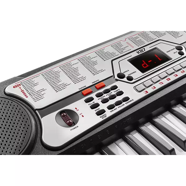 The KB7 54-Key Electronic Keyboard is a great quality, entry-level keyboard perfect for aspiring pianists of all ages. The KB7 is compact and features 54 sturdy keys, providing a “real piano” feel. This compact, portable keyboard has 2 built-in stereo speakers and a large, easy-to-read LED screen. The keyboard can be powered with the included adapter or with 6 x AA 1.5V batteries. (batteries not included) Ideal for beginners.
