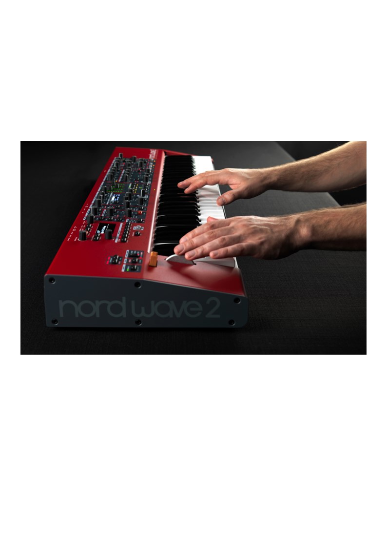 The Nord Wave 2 is a versatile 4-part synthesizer that offers a blend of classic and modern synthesis methods. It combines Sample, Virtual Analog, Wavetable, and FM synthesis into one powerful instrument. With 48 voices of polyphony and a 61-note keyboard with Aftertouch, it provides the flexibility and depth needed for a wide range of musical styles.