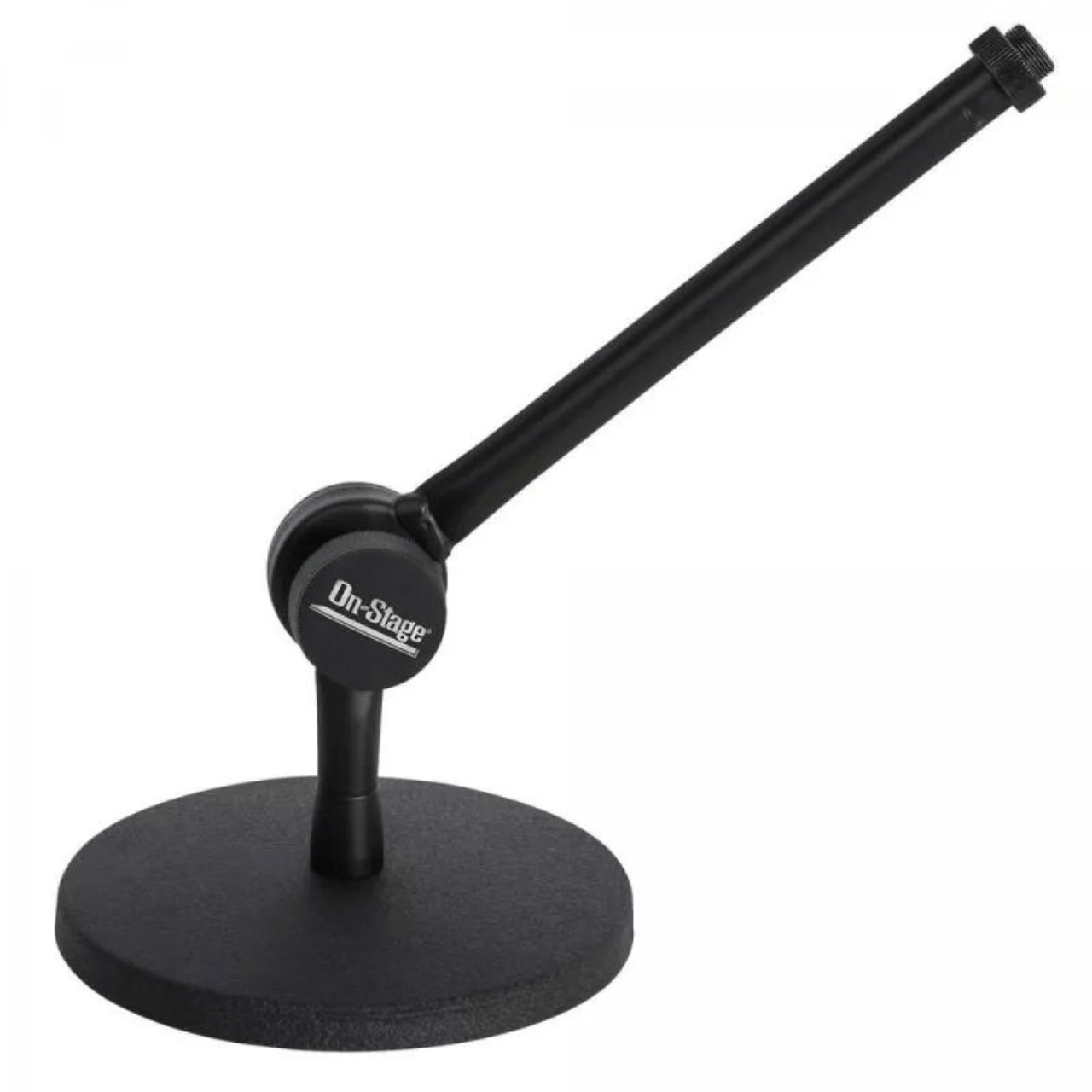 The innovative clutch on our DS300B Posi-Lok Desktop Mic Stand enables locking placement of the boom at a variety of angles and features an ergonomic knob for quick and easy adjustment. The 7″ mini boom accepts mic clips and is a great length for desktop workstations, tabletop, and podium miking applications. Its solid, heavy base with nonslip rubber feet provides exceptional stability.