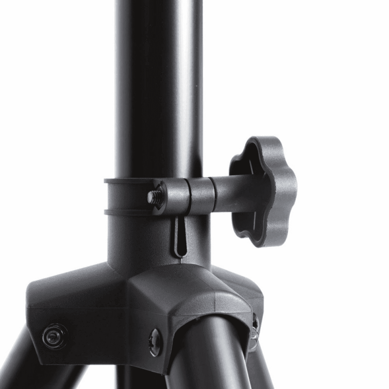 - Height settings are reinforced with a locking pin to ensure reliable speaker support