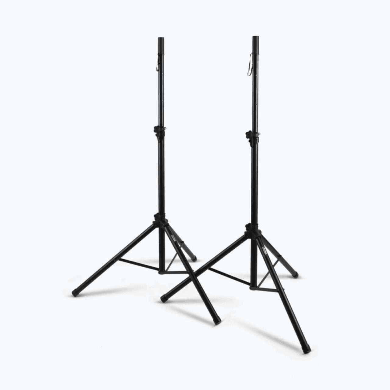 Our lightweight SSP7900 All-Aluminum Speaker Stand Pack comes with everything needed to support two speakers on individual stands. The stands feature versatile adaptable poles that support all standard speaker cabinet mounting sockets, and their height adjusts to accommodate a variety of applications. Heavy-duty construction, braced bases, and nonslip feet work together to deliver exceptional stability and load balance, even on irregular surfaces. The durable black finish preserves the professional appearance of any space. For convenient storage and ergonomic transportation, the tripod bases fold flat, and all the components fit into an included carrying bag with an ergonomic shoulder strap.