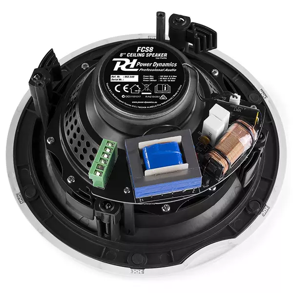 A series of high quality ceiling speakers that are specially designed to offer premium finish with superb performance in 100V line and low impedance 8 ohm systems. These 2-way coaxial speakers fulfils the professional demand for excellent sound pressure and tone reproduction. The low-profile design can be mounted into most ceiling materials and the metal grille ensures a flush fit. Supplied in white.