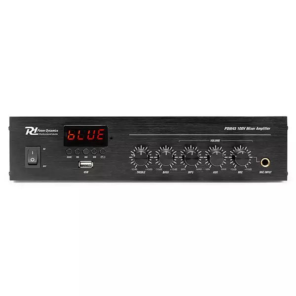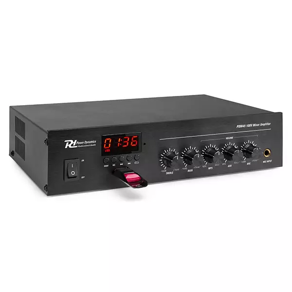 The PDM-series is a range of compact 100V amplifiers offering a range of comprehensive features, excellent performance and reliability for use in a wide variety of small to medium installations. All models have a Built-in USB/FM media player and are also equipped with BT connectivity. These digital amplifiers are constructed in a strong metal cabinet and are suitable for 100V or 4-16 Ohm speakers systems. A perfect All-in-one solution for a competitive price!