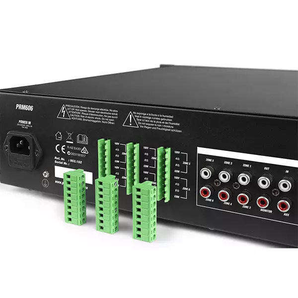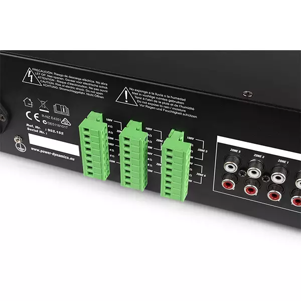 - Zone outputs: 6x Speaker Terminal (100V / 4Ohm / 8Ohm / Com)