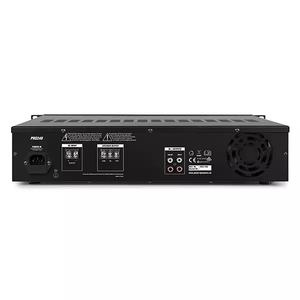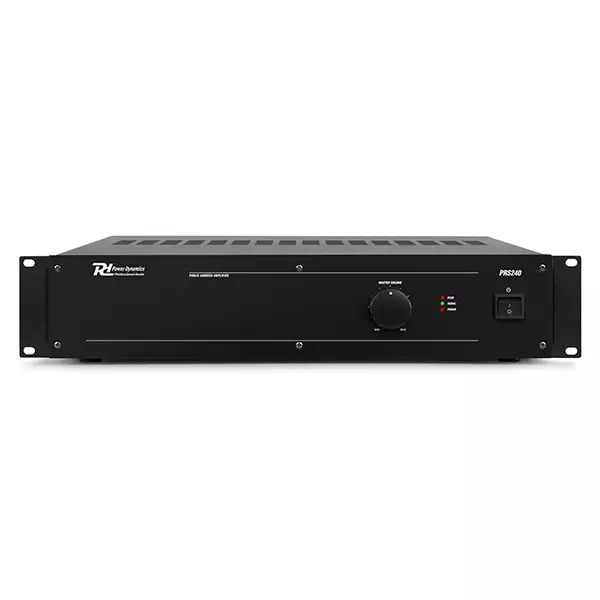 A boost amplifier for use with the Power Dynamics PRM-series amplifiers providing additional power if desired. Comes with unbalanced inputs as well as 8 ohms and 100V output options.