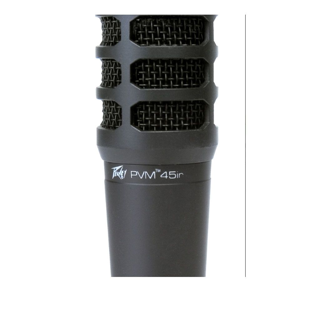 The PVM™ 45ir is dynamic microphone and utilizes a super-cardioid pickup pattern, one of the most popular patterns in the industry for use with acoustic instruments and vocals. The slightly narrow on-axis pickup range affords the vocal user less bleed-over from other instruments or vocals.