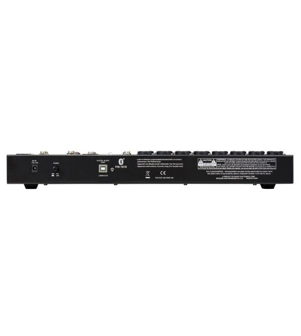 Modern features such as Bluetooth allow seamless connection to almost any “smart” device. 8 direct outs allow easy connection to most DAW interfaces for recording. In addition, the PV 14 BT can stream audio directly to a PC. MP3 playback is also available, just plug a flash drive with MP3 files on it into the USB A port and use the LCD to select and play back music. The PV series Solo feature allows the user to listen to individual channels via headphone or control room outputs, and the EQ bypass allows the user to hear and compare the EQ’d signal to the original signal with the push of a button. 4 channels of compression keep signals with difficult levels under control, and Peavey’s exclusive guitar shape adjusts the EQ and preamp specifically for guitar. Hi pass filters on every channel remove unwanted rumble and noise, and balanced AUX and Master outputs ensure a clean noise-free signal to your powered speakers or power amplifier.