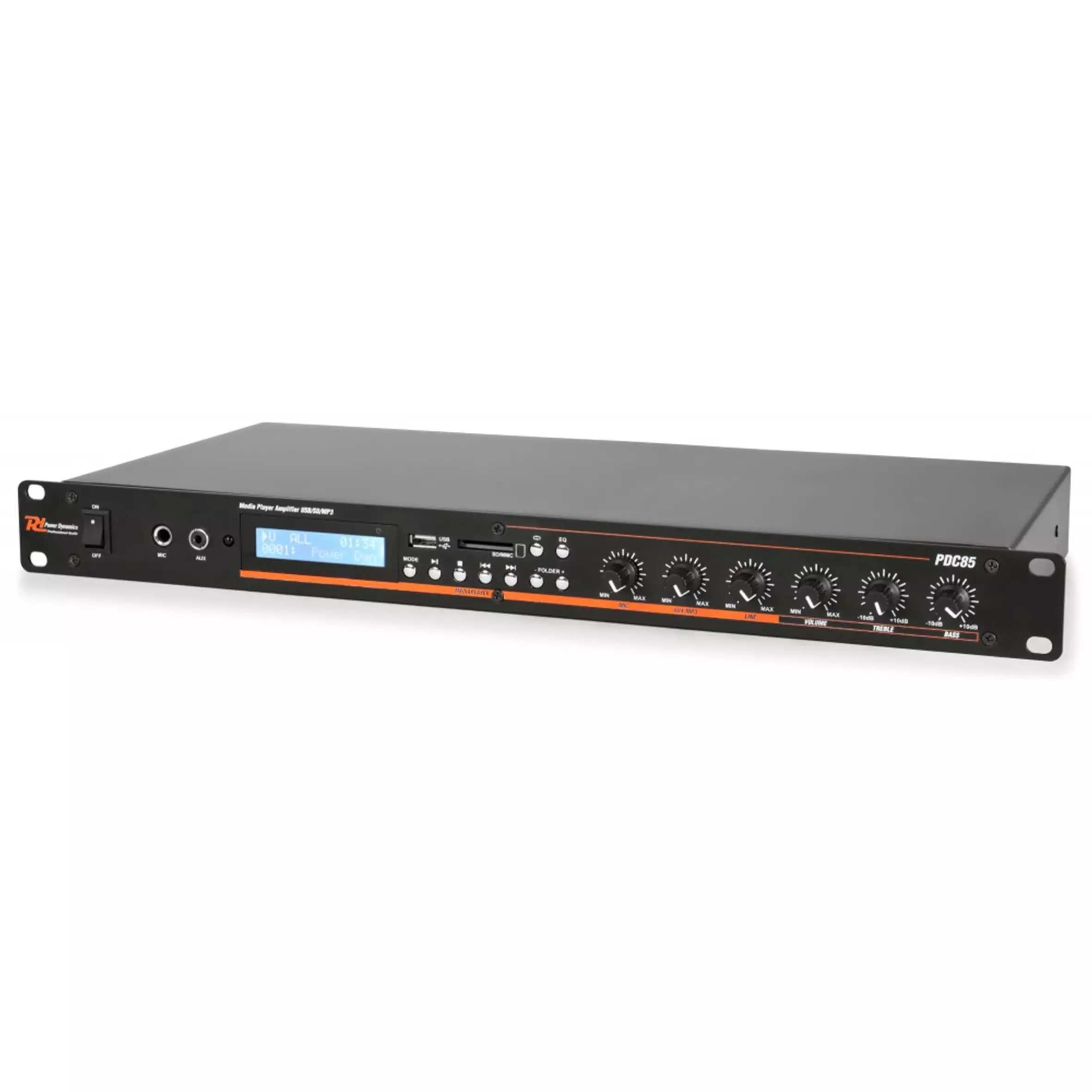 The PDC85 is a multifunctional media player with built-in 2x 200W amplifier. Featuring both a USB and SD slot as well as a BT-receiver to stream music directly to the player. The frontside features two jack inputs, one 6.3mm to connect a microphone and a 3.5mm aux input for your smartphone or MP3 player.
