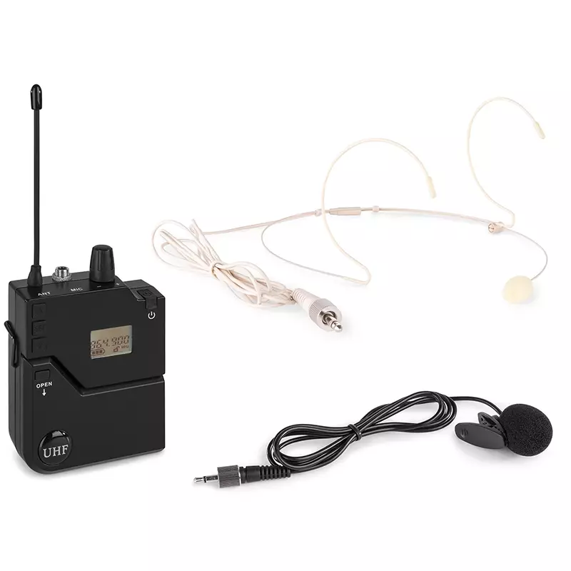 Bodypack transmitter for PD632 wireless UHF microphone systems. Equipped with IR learning system for channel selection. Ideal for handsfree applications, vocals, presentations etc. Including tie-clip and skin-colour headset.