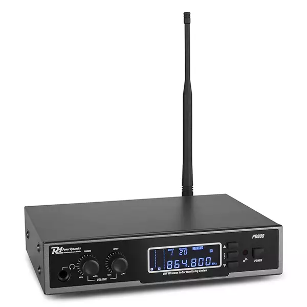 The PD800 is a value for money, great sounding In Ear Monitoring (IEM) system, designed for stage performance and broadcasting. Using up-to-date UHF wireless frequencies, musicians can move around freely onstage, while hearing themselves clearly and without causing damage to their hearing via loud foldback speakers. The set is equipped with an easy to read backlit LCD display on both the receiver and transmitter and comes with an isolated earphone. It’s also possible to use your own custom designed earphones. Perfect for drummers, keyboardist, guitar player, vocalist and other performers.