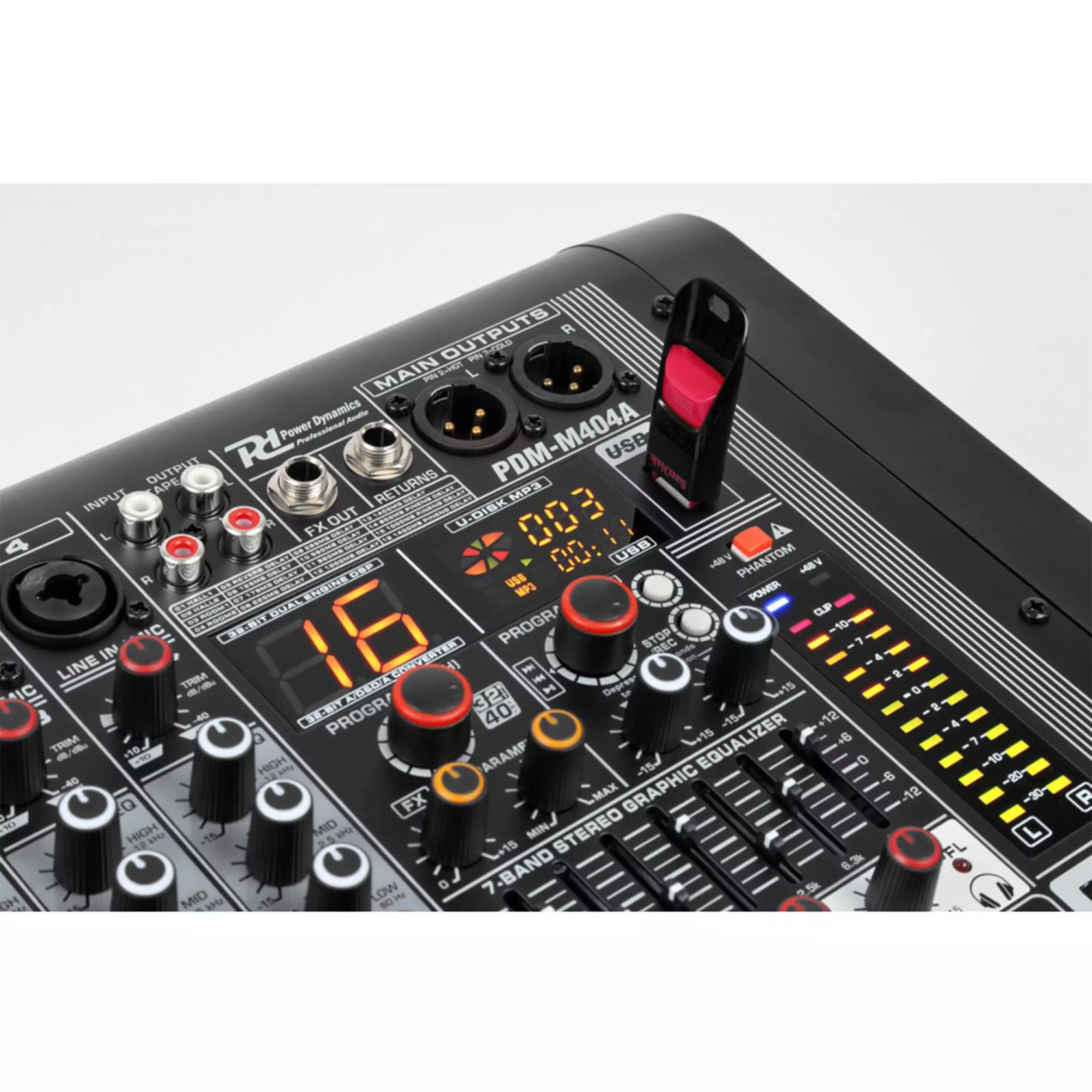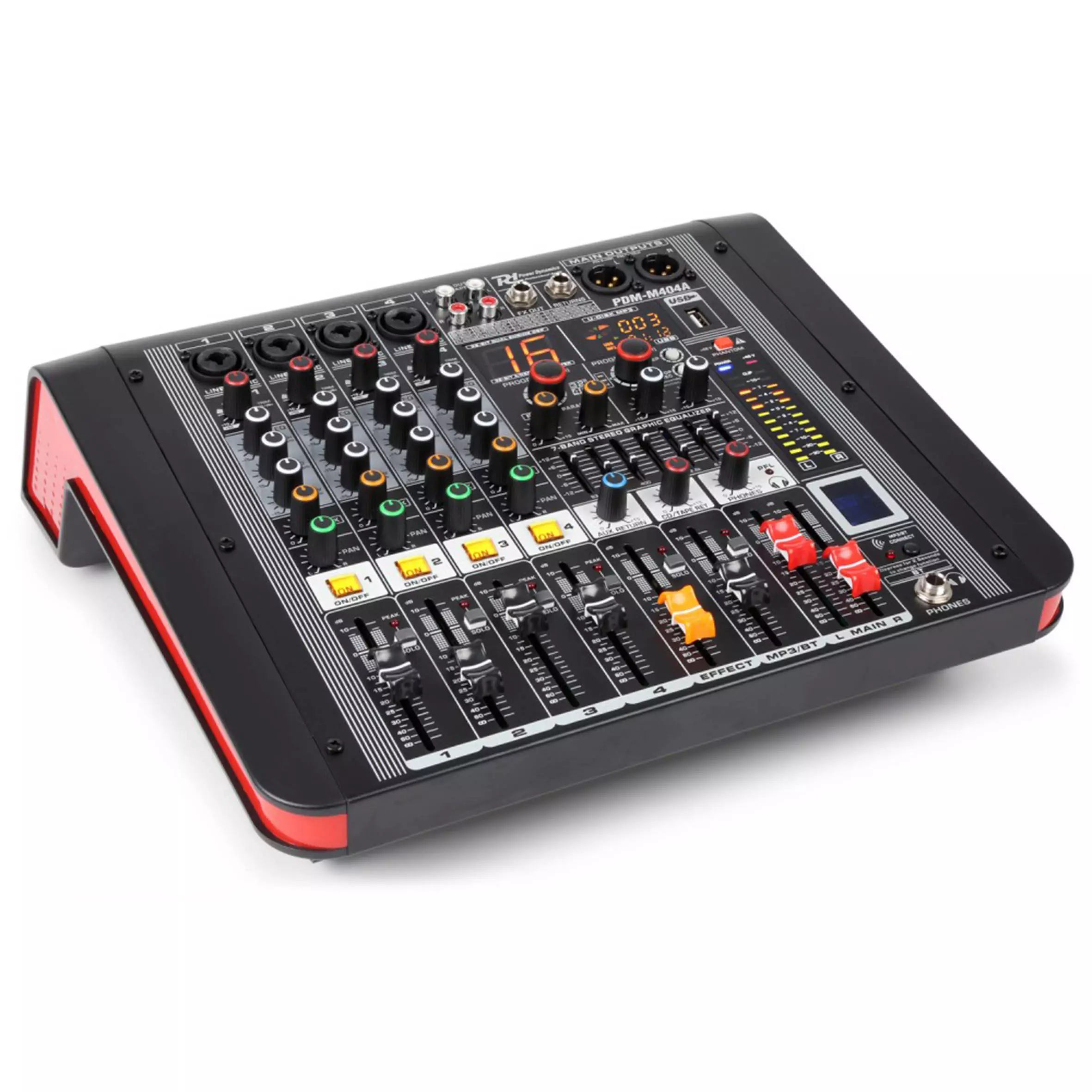 Table top design music mixer with built-in amplifier and many attractive features. Features include mute and solo switches on every channel, built-in USB player with digital display and BT receiver to stream music to the mixer during the break. Ideal for live setups and small bands.