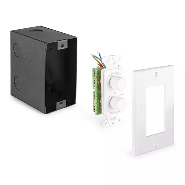 The PDWS3 In-Wall Input/Speaker Selector provides a convenient way in which two sets of loudspeakers can be designated in any combination (only A, only B or A and B at the same time). This switch makes it simple to switch between two different audio sources and then directs that audio to the set of speakers connected. The package also includes mounting material including a universal wall mount box, which will ensure that installation can be completed with ease.