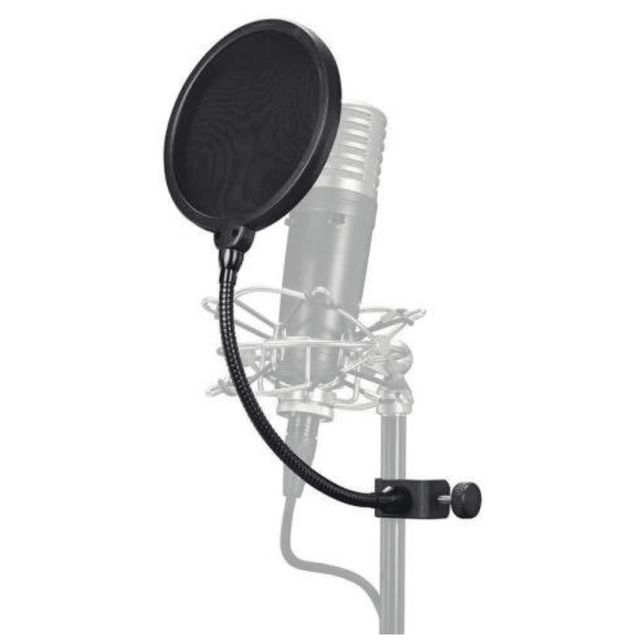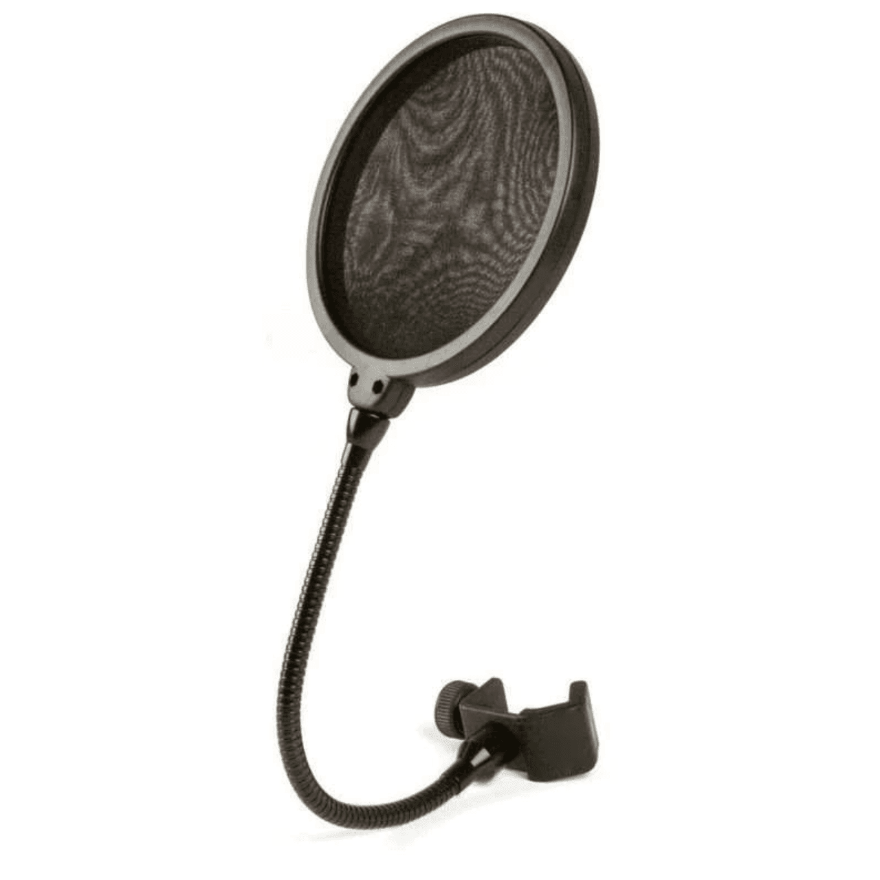 The pop filter, filters out unpleasant vocal sounds called “popping”. It occurs when the “B” and “P” sounds are pronounced. This is also a necessity for your studio and they are inexpensive.