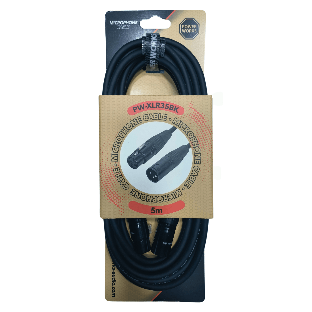 The PowerWorks PW-XLR35BK 5M XLR Male to Female Cable provides clear and reliable audio transmission.